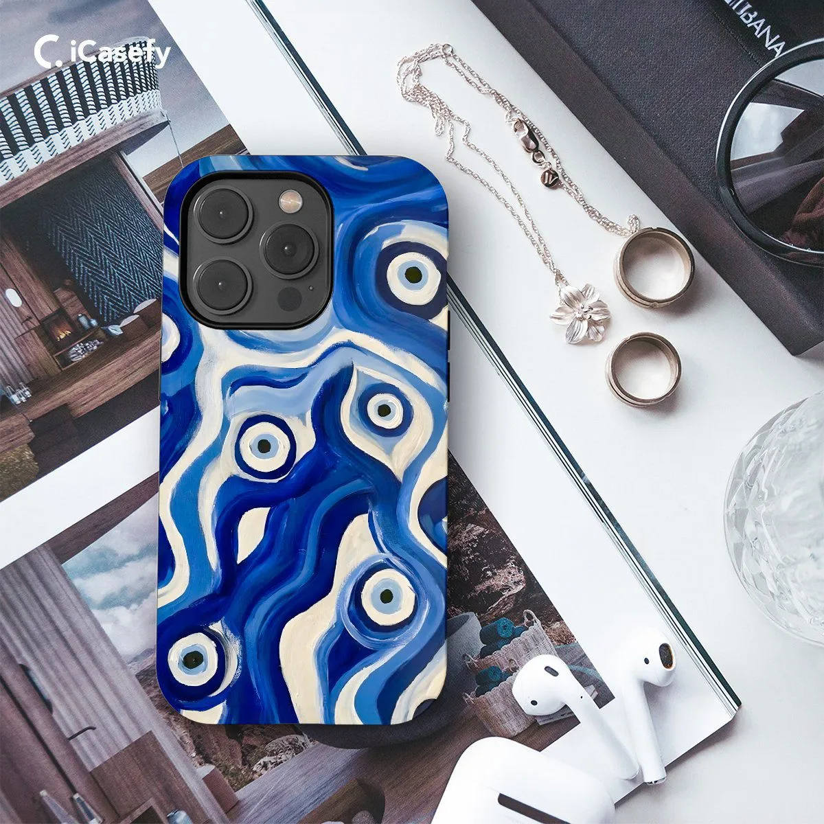 Ward off negativity and channel protection with a striking blue evil eye phone case. Adorned with the iconic symbol of the evil eye, believed to safeguard against malevolent energies, this accessory offers both style and spiritual significance. Carry a touch of ancient mysticism with you wherever you go, letting your device become a talisman of protection and positivity with this captivating and meaningful case.