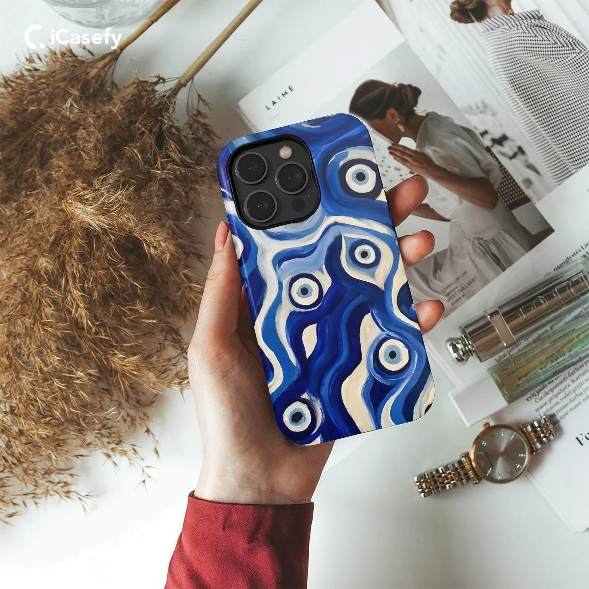 Ward off negativity and channel protection with a striking blue evil eye phone case. Adorned with the iconic symbol of the evil eye, believed to safeguard against malevolent energies, this accessory offers both style and spiritual significance. Carry a touch of ancient mysticism with you wherever you go, letting your device become a talisman of protection and positivity with this captivating and meaningful case.
