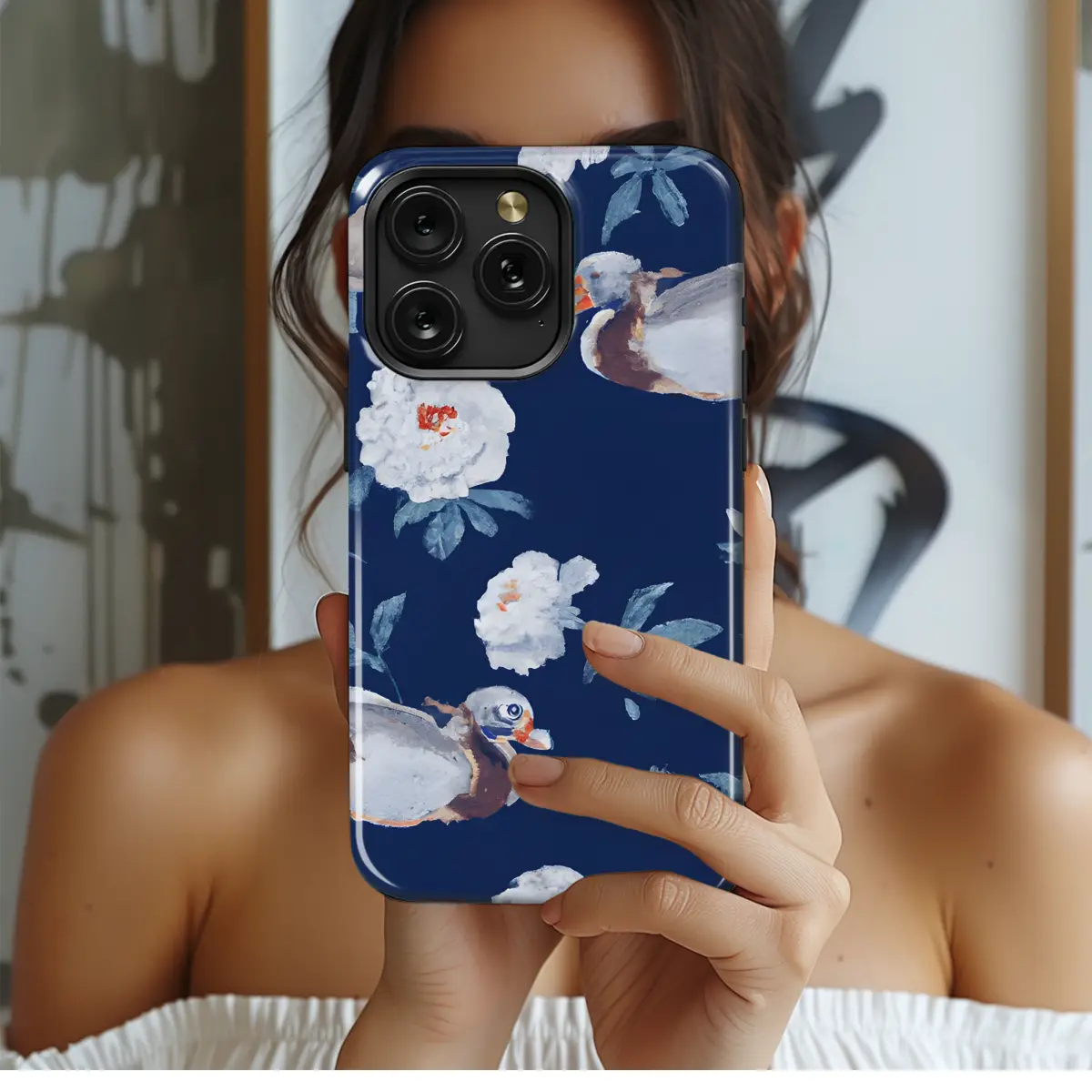 Elevate your phone's style with our enchanting Blue Floral Peony with Ducks Phone Case. Adorned with vibrant blue peonies and adorable ducks frolicking amidst nature, this case exudes a touch of whimsy and sophistication. Crafted from durable materials, it offers reliable protection while enhancing your device's aesthetic appeal. Available for various iPhone, Samsung, and Pixel models, this case guarantees a perfect fit and seamless access to all buttons and ports. Embrace the beauty of nature and protect your phone in style.