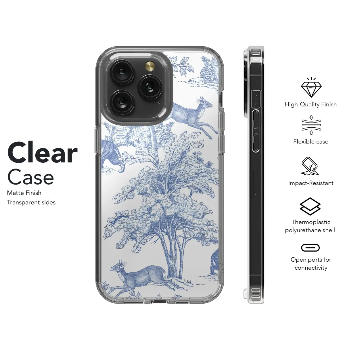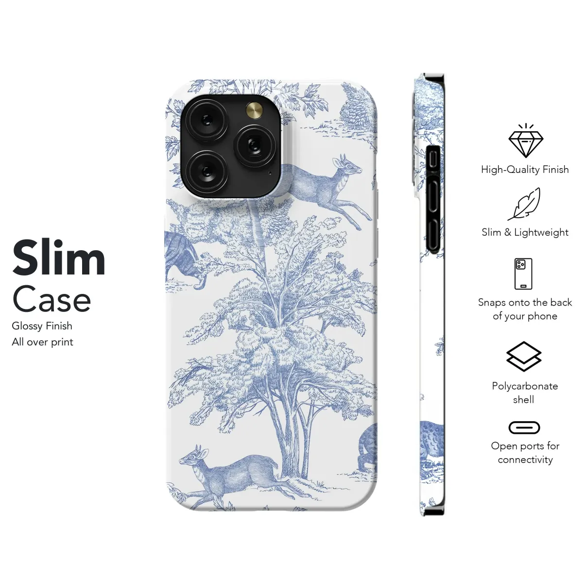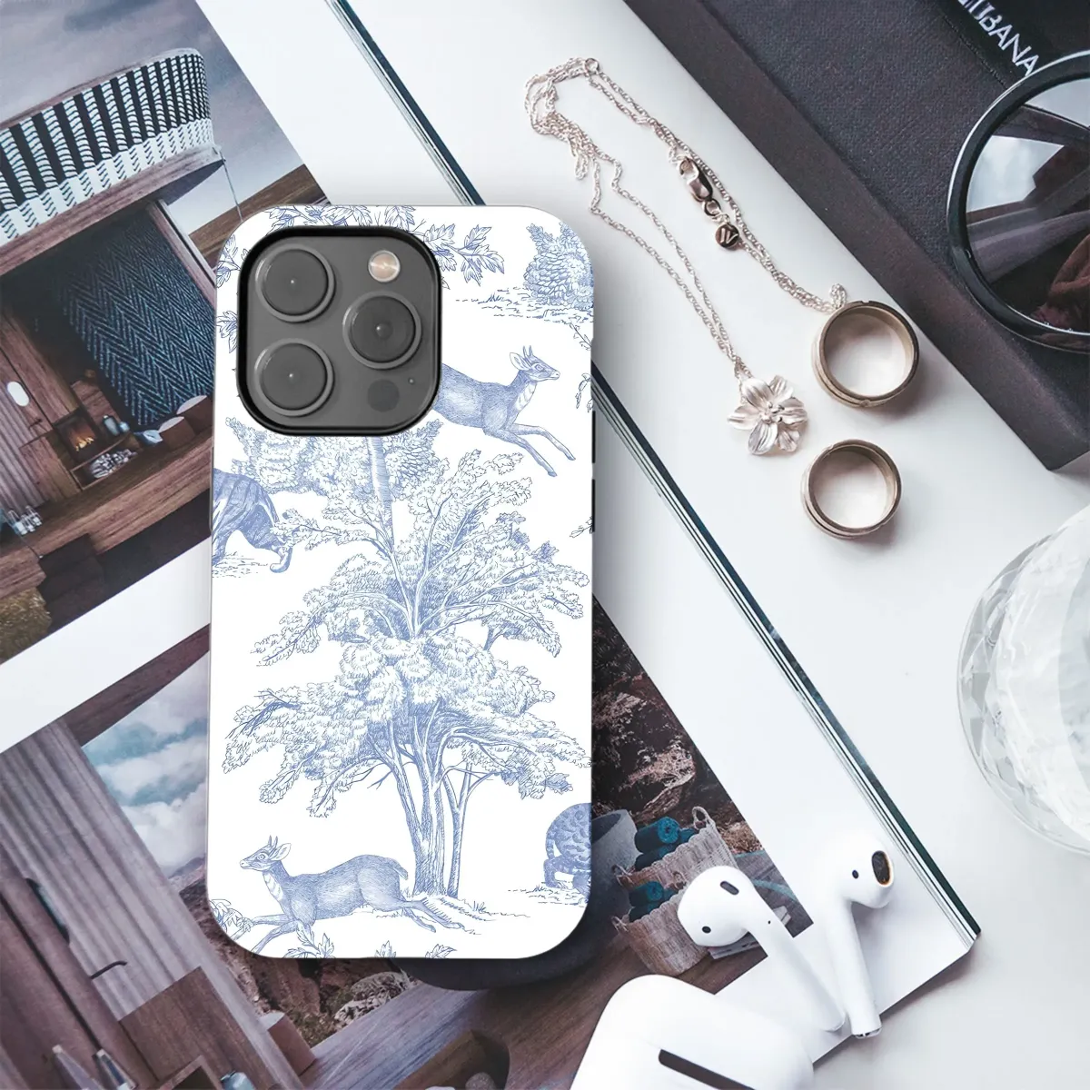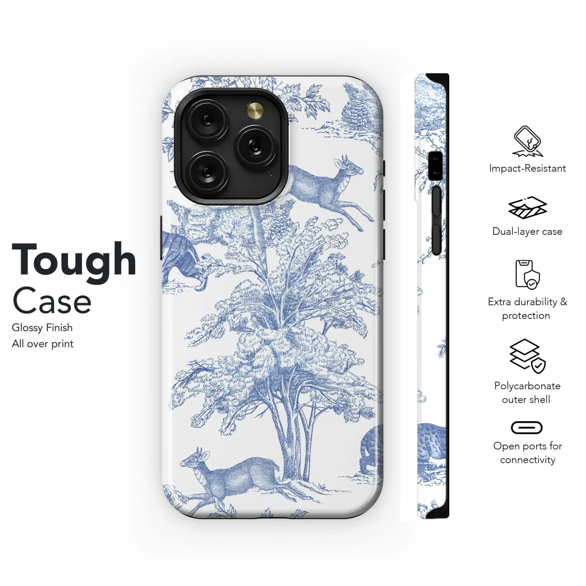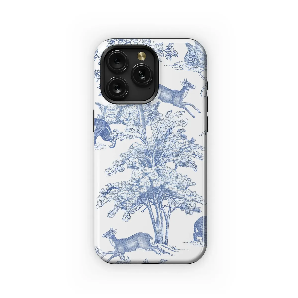 Adorn your device with this exquisite, vintage-inspired art. Featuring a classic blue and white toile design, this piece showcases a whimsical woodland scene teeming with wildlife. Majestic tigers and graceful deer roam freely among intricately detailed trees, creating a captivating landscape. The refined etching style and serene color palette evoke a sense of timeless elegance, perfect for those who appreciate traditional aesthetics with a touch of nature's charm. Ideal for anyone seeking a sophisticated and unique aesthetic, this charming print brings a breath of fresh air and artistic flair to your everyday essentials. Explore the beauty of nature-inspired décor with this elegant design; it will transform your everyday tech. Search for blue and white decor, nature illustration, animal art, vintage pattern, or classic toile to find this distinctive design.