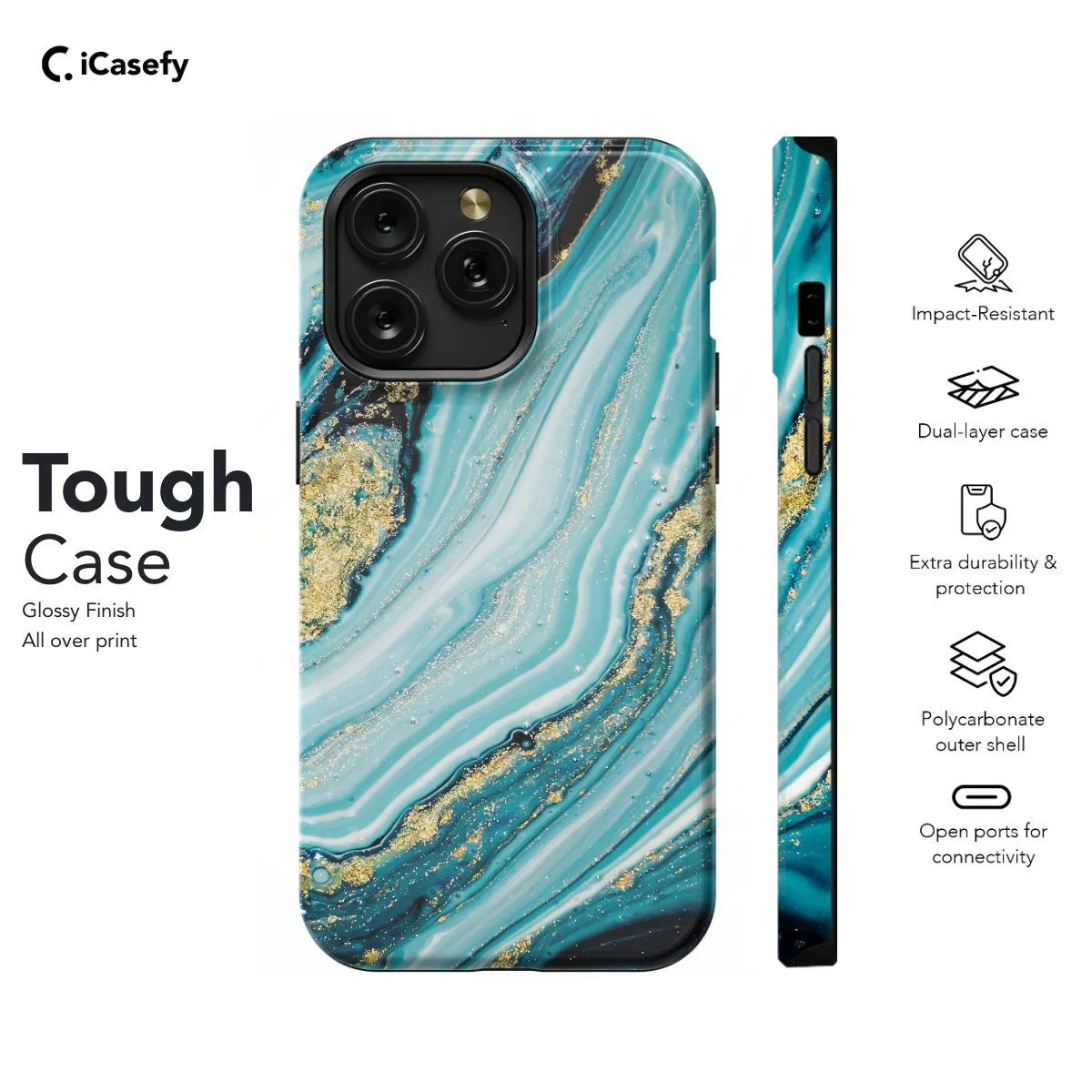Dive into oceanic opulence with our Blue Golden Wave Marble Phone Case. Featuring a mesmerizing blend of blue and golden hues that mimic the movement of waves in marble, this case exudes elegance and sophistication. Crafted for both style and protection, it safeguards your phone while adding a touch of refined beauty. With precise cutouts for ports and buttons, it ensures seamless functionality. Make a statement of aquatic allure with our Blue Golden Wave Marble Phone Case today!