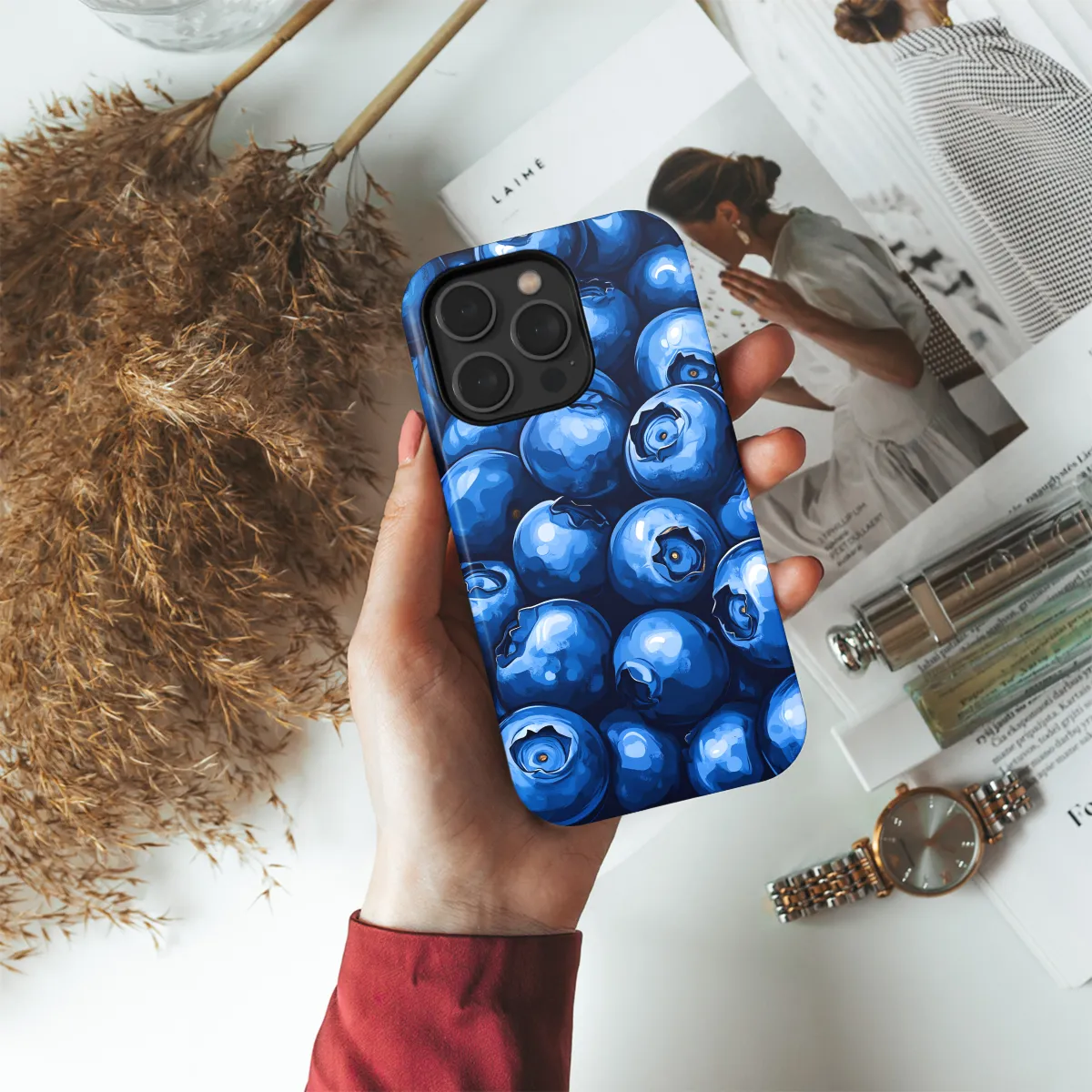 Indulge in the vibrant hues of summer with our "Blueberry Burst" phone case! This captivating cover will transform your iPhone, Samsung, or Pixel 13/14 into a delectable treat. Its sleek design complements your smartphone's sleek contours, while its durable construction safeguards against accidental drops and scratches. Each case is adorned with a mesmerizing blueberry burst print, evoking the sweet and juicy essence of this beloved fruit. Experience the joy of summer with every touch of your phone, adorned with this whimsical and protective cover that's perfect for any occasion.