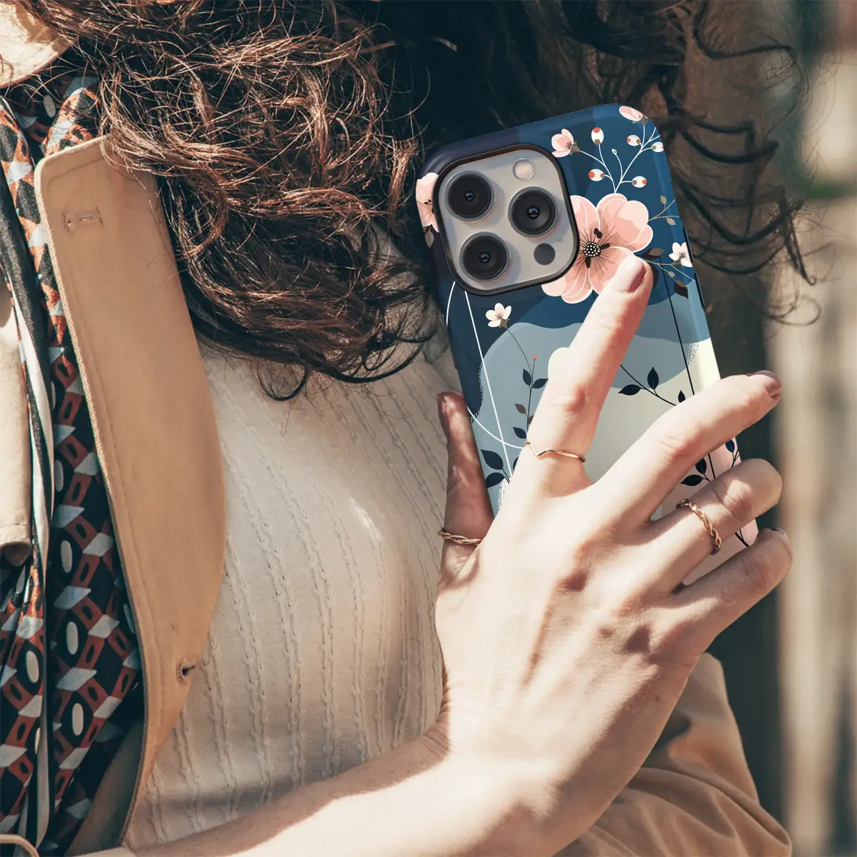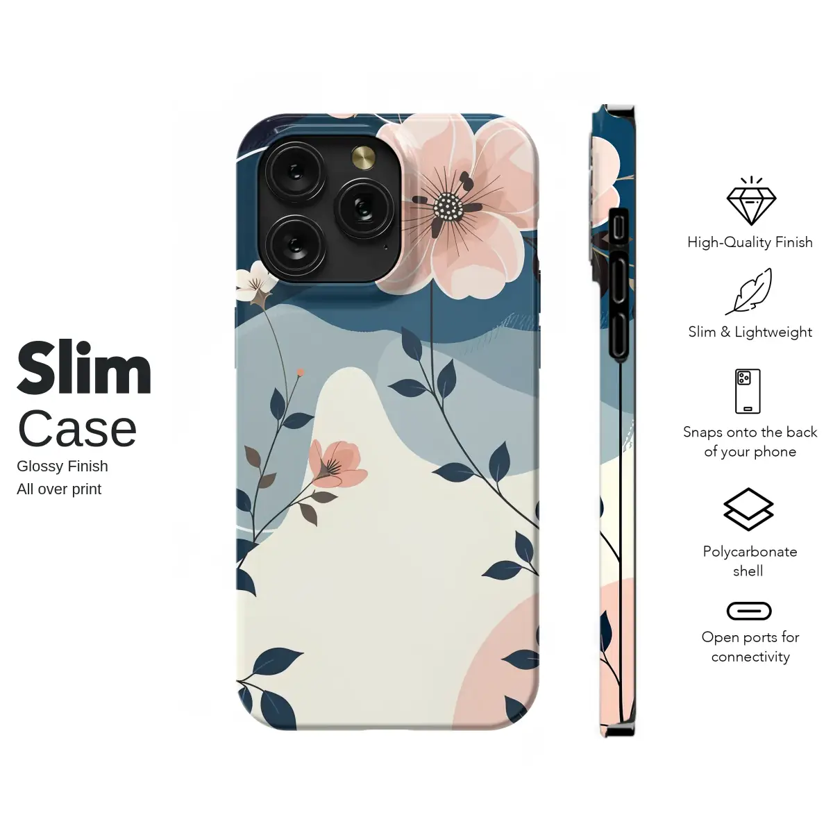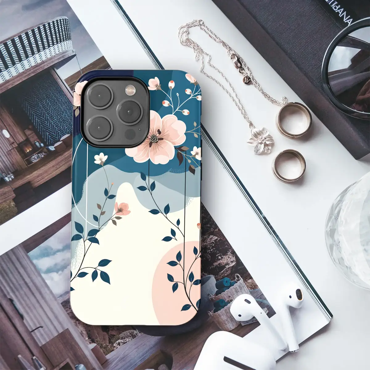 Wrap your most-used essential in the quiet elegance of a midnight garden. This stunning Japandi-inspired botanical design captures a moment of serene beauty, letting you carry a piece of art wherever you go. Delicate blush pink blossoms and dainty white flowers gently unfold against a rich tapestry of navy and dusty blue abstract waves, creating a dreamy, layered landscape. Dark, slender vines climb with an elegant grace, their deep color contrasting beautifully with the soft, creamy backdrop and the clean, minimalist lines that frame the scene like a modern gallery piece. It’s an aesthetic that feels both artistic and tranquil, perfect for the romantic at heart who appreciates a touch of nature-inspired sophistication in their daily routine. This abstract floral pattern is more than just a pretty design; it’s a daily reminder of calm and beauty, transforming your everyday carry into a personal expression of style. It makes an ideal artistic gift for her, a thoughtful present for a best friend, or a well-deserved treat to elevate your tech with a touch of whimsical elegance.