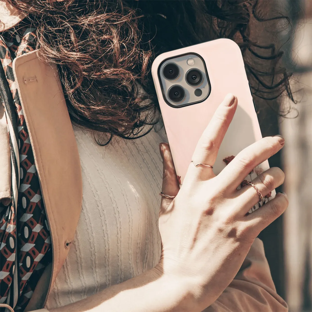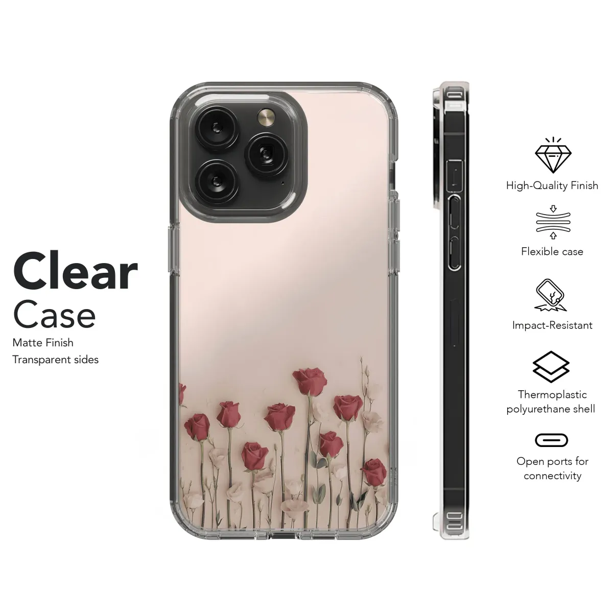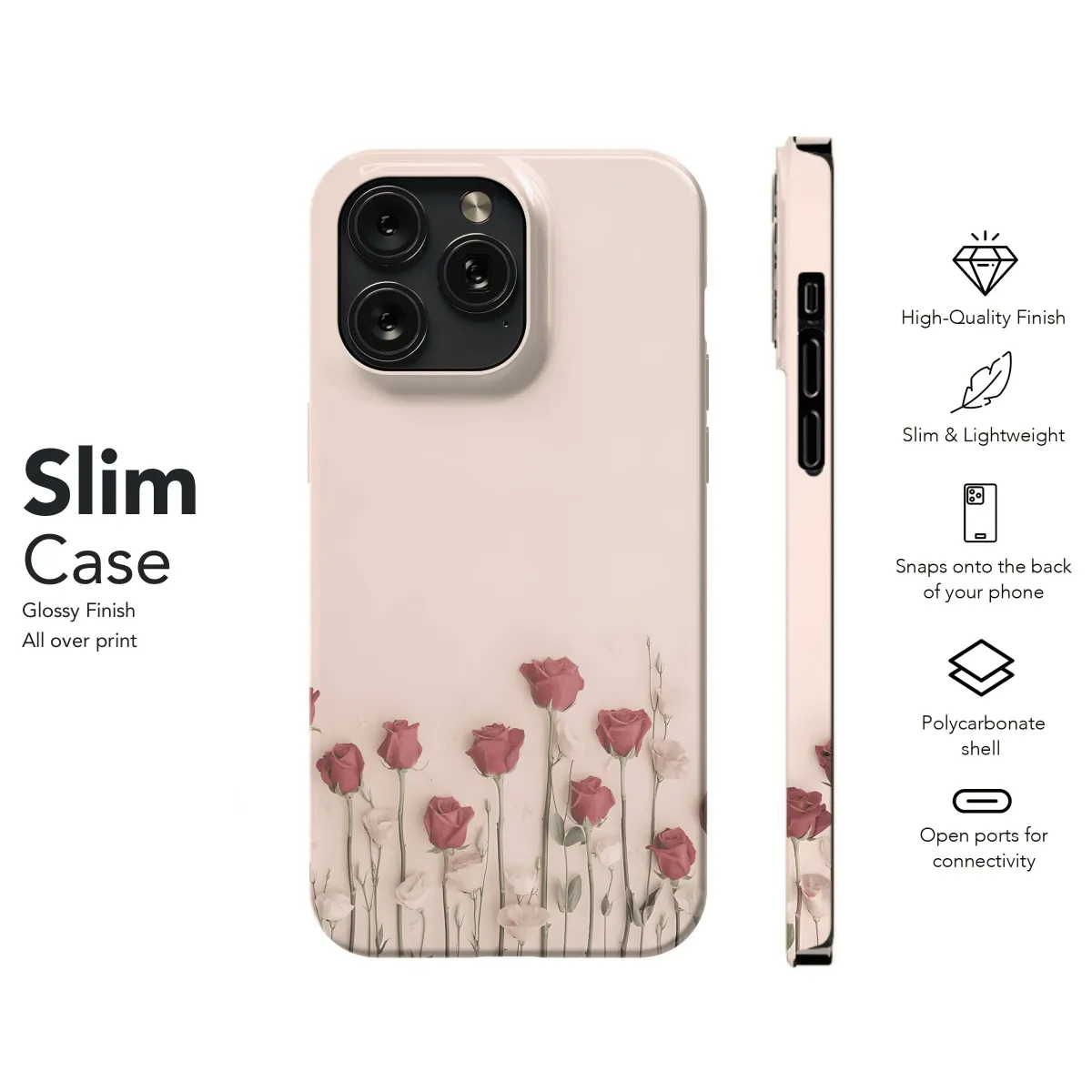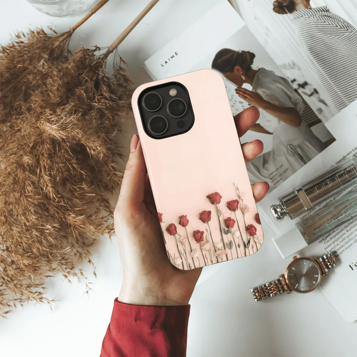 Romantic blush rose garden design phone case. Protect your iPhone, Samsung, or Pixel with this beautiful floral cover. Available for models 4, 6, 43, and 46.