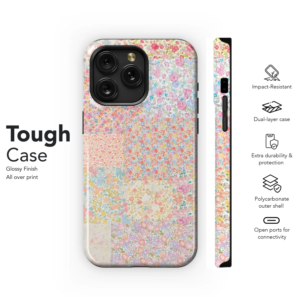 This charming Blushing Quilt Phone Case is designed to protect your smartphone in style. Adorned with a captivating patchwork design in soft, rosy hues, it brings a touch of warmth and elegance to your device. The case is meticulously crafted from durable materials to withstand everyday wear and tear, ensuring your phone remains protected from scratches and bumps. Whether you're running errands around town or catching up with friends, this phone case adds a touch of whimsy and protection to your daily routine.