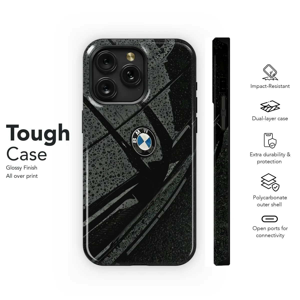 Elevate your style with this sleek, captivating design featuring the iconic BMW logo. The high-resolution image showcases the logo's intricate details against a backdrop of a rain-slicked, obsidian-black surface, creating a sophisticated and moody aesthetic. This premium-quality print is perfect for those who appreciate luxury and attention to detail. The striking contrast between the dark vehicle and the vibrant logo is eye-catching, ensuring your device stands out from the crowd. This design offers a unique blend of luxury and modern style, a statement piece that reflects your discerning taste. Protect your device in style with this bold and impactful graphic, capturing the essence of performance and elegance. Its durable construction guarantees long-lasting protection and vibrant color retention, preserving its stunning visual appeal for extended use. Express your individuality with this exceptional design, showcasing your appreciation for iconic brands and refined style. This is more than just a print; it's a testament to your refined taste and pursuit of quality.