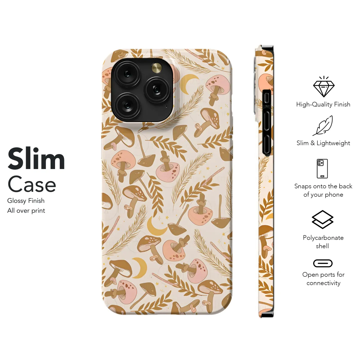 Escape into a whimsical world with our enchanting "Boho Mushroom Magic" phone case. This ethereal cover features a captivating array of vibrant mushrooms, each hand-painted with intricate details that dance across your device. Its bohemian vibe will transport you to a mystical forest where nature's secrets unfold. Available for a wide range of iPhone, Samsung, and Pixel models, this case offers not only protection for your beloved device but also an artistic statement that will turn heads. Let your phone become a canvas for enchantment with our Boho Mushroom Magic phone case.