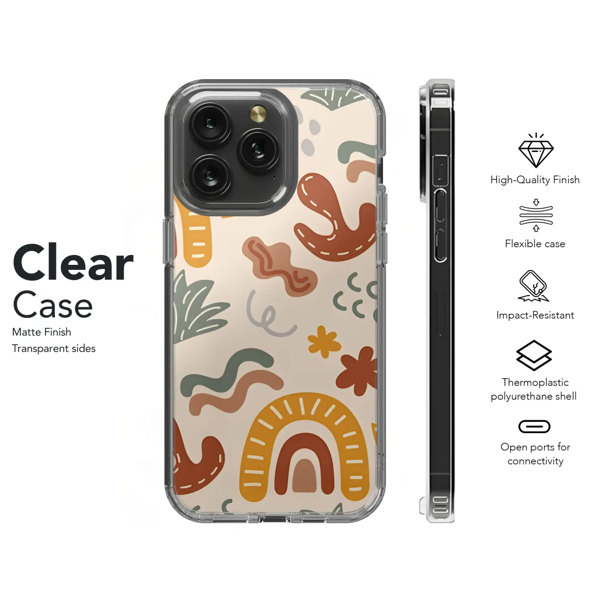 Infuse your everyday essentials with the earthy charm of this bohemian-inspired pattern. Featuring a delightful array of hand-drawn rainbows, whimsical crowns, abstract shapes, and playful foliage in a warm, muted color palette, this design brings a touch of nature and free-spirited style to your accessories. The blend of mustard yellow, burnt orange, sage green, and beige creates a harmonious and comforting aesthetic. Perfect for those who love boho decor, minimalist art, and organic designs, this print adds a unique and personalized touch. Use it to create custom-printed items like personalized gifts, tech accessories, or home decor accents. This trendy and modern pattern will appeal to lovers of Scandinavian design, earthy tones, and subtle, artistic expressions. Let this captivating design transform your belongings into a statement of individuality and style. Ideal for crafting projects, digital backgrounds, or adding a personal touch to your gadgets.