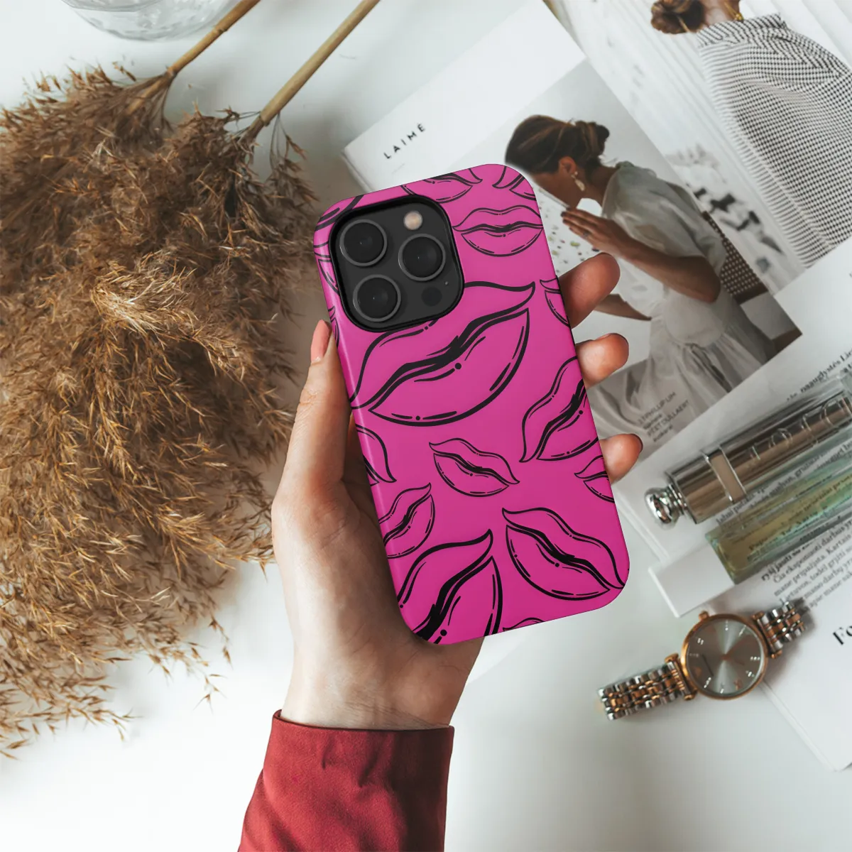 Embrace the bohemian spirit with this chic phone case adorned with vibrant lip prints. Its eye-catching design adds a touch of style and personality to your device, while the durable construction ensures optimal protection from scratches and bumps. Experience the perfect blend of aesthetics and functionality with our Boho Style Lips Print Phone Case.