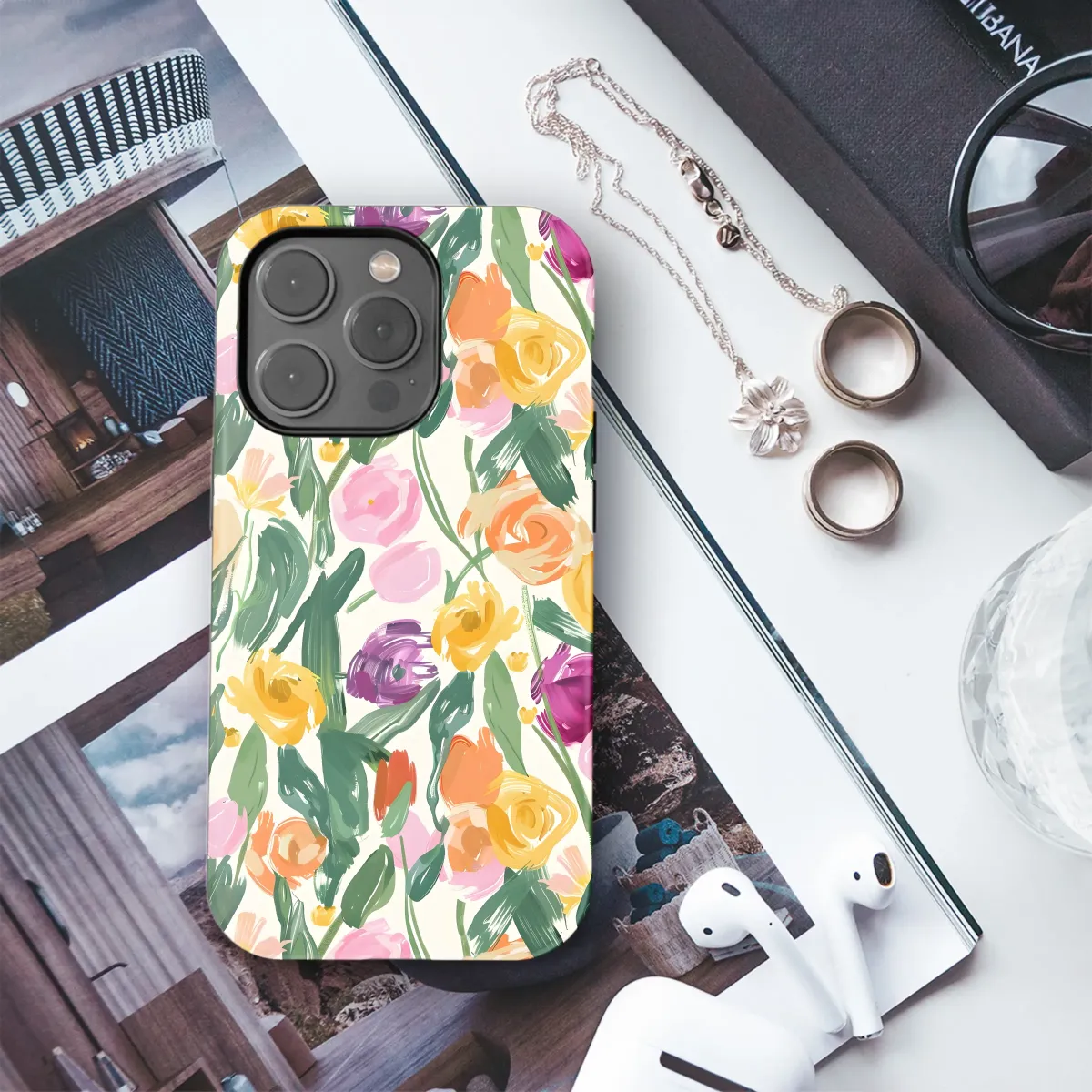 Brighten your day with this vibrant floral design, featuring a joyful explosion of hand-painted blooms in a cheerful palette. This lively artwork showcases a dynamic mix of roses, tulips, and other blossoms rendered in bold, expressive brushstrokes. The creamy off-white background allows the rich colors of the flowers to pop, creating a stunning visual effect that's both modern and timeless. This design is perfect for adding a touch of artistic flair to your everyday essentials, transforming them into unique statements of personal style. The high-quality print ensures vibrant, long-lasting color that resists fading, scratches, and wear, ensuring your artwork remains a beautiful focal point for years to come. Embrace the beauty of nature's artistry with this sophisticated yet playful design, perfect for expressing your unique personality. This design is printed using eco-friendly inks and ethically sourced materials, so you can enjoy your beautiful new accessory knowing it’s good for the planet too. Add a touch of whimsy and elegance to your life – order yours today! #floraldesign #floralart #handpainted #flowers #vibrantcolors #artistic #unique #personalized #ecofriendly #springflowers #summerflowers #etsyseller #etsyshop #customdesign #whimsical