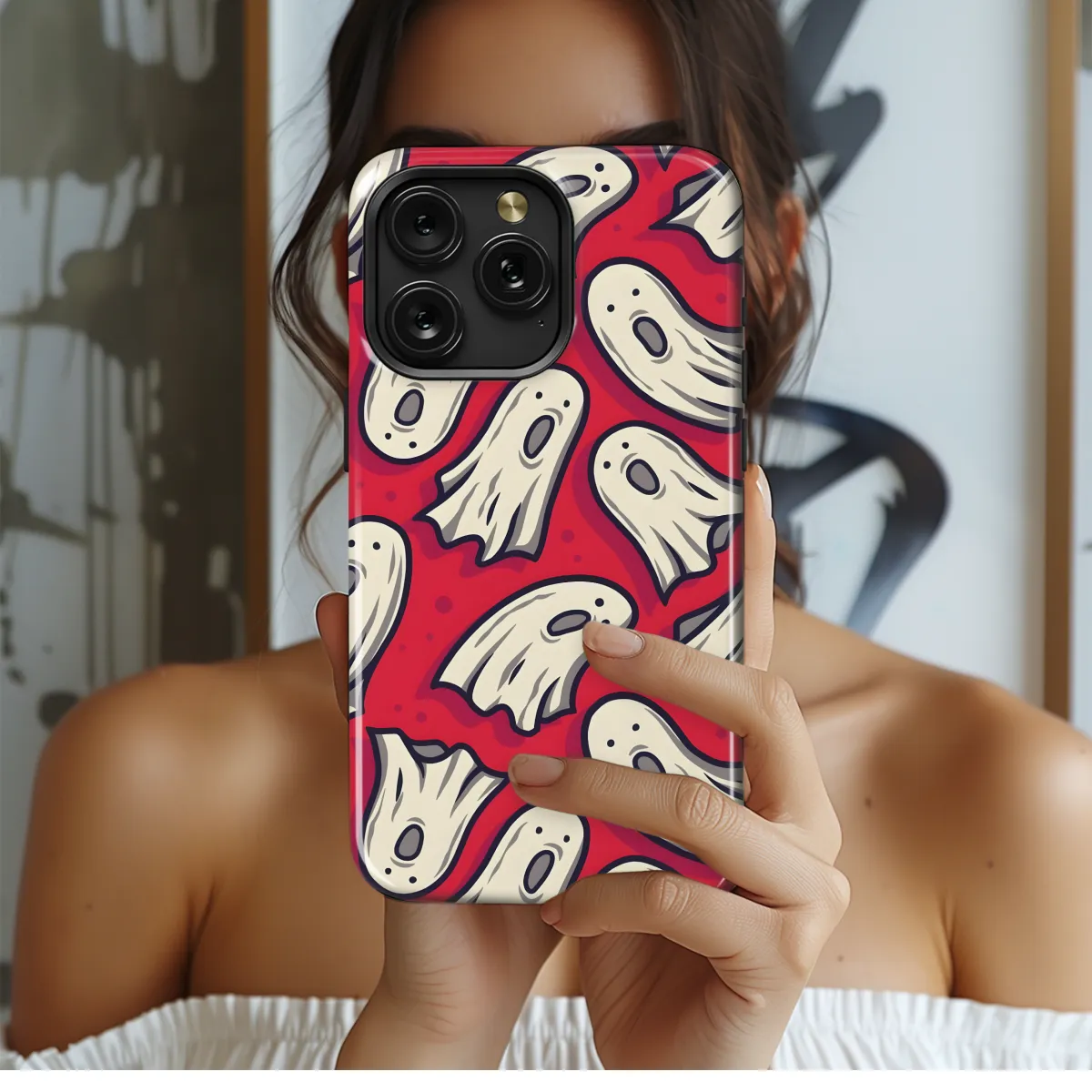 Get into the Halloween spirit with our Boo Spooky Ghosts phone case! This festive case is designed to protect your iPhone, Samsung, or Pixel phone from bumps and scratches, while showing off your love for all things spooky. The case features a playful pattern of ghosts and the word "boo" on a black background. It's the perfect way to add a touch of Halloween fun to your phone.