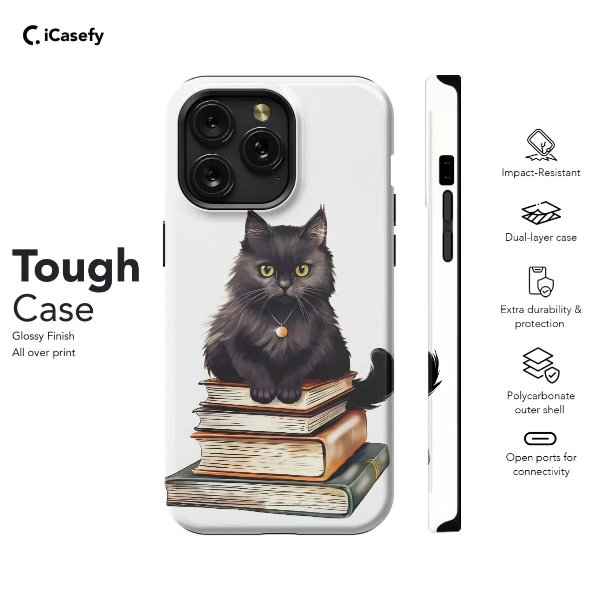 Elevate your bookish style with our Black Cat Lover phone case. Featuring a charming black cat amidst a backdrop of beloved books, this design celebrates the allure of literature and feline companionship. Crafted for book lovers, it offers both style and protection with precise cutouts for easy access to ports. Embrace the whimsy of black cats and books with our phone case.