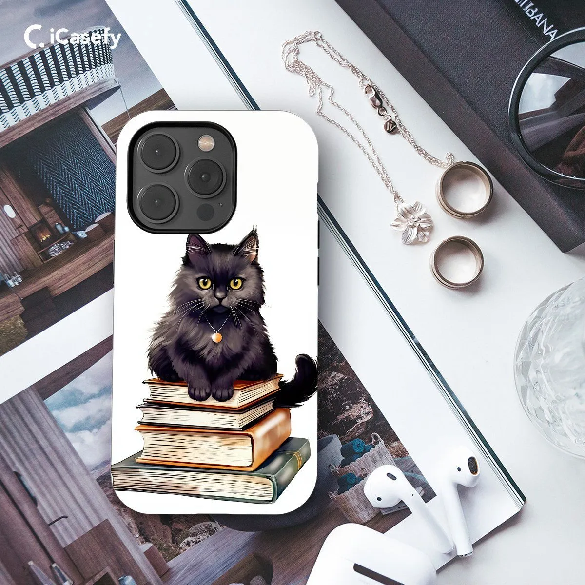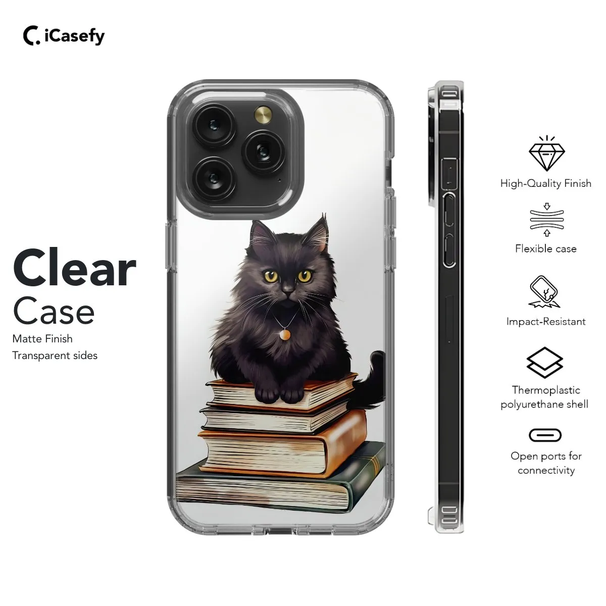 Elevate your bookish style with our Black Cat Lover phone case. Featuring a charming black cat amidst a backdrop of beloved books, this design celebrates the allure of literature and feline companionship. Crafted for book lovers, it offers both style and protection with precise cutouts for easy access to ports. Embrace the whimsy of black cats and books with our phone case.