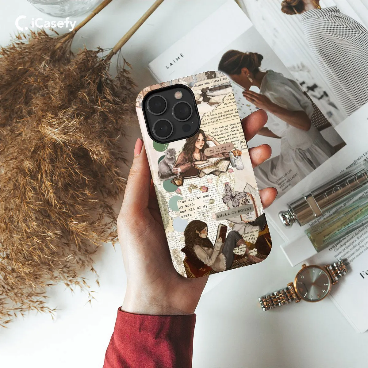 Celebrate the love for literature with a charming bookish collage phone case. Adorned with images of books, reading glasses, typewriters, and other literary motifs, this accessory captures the essence of book lover culture in a delightful and aesthetic way. Carry a touch of literary inspiration with you wherever you go, letting your device become a tribute to the joy of reading and the beauty of storytelling with this delightful and bookish accessory.