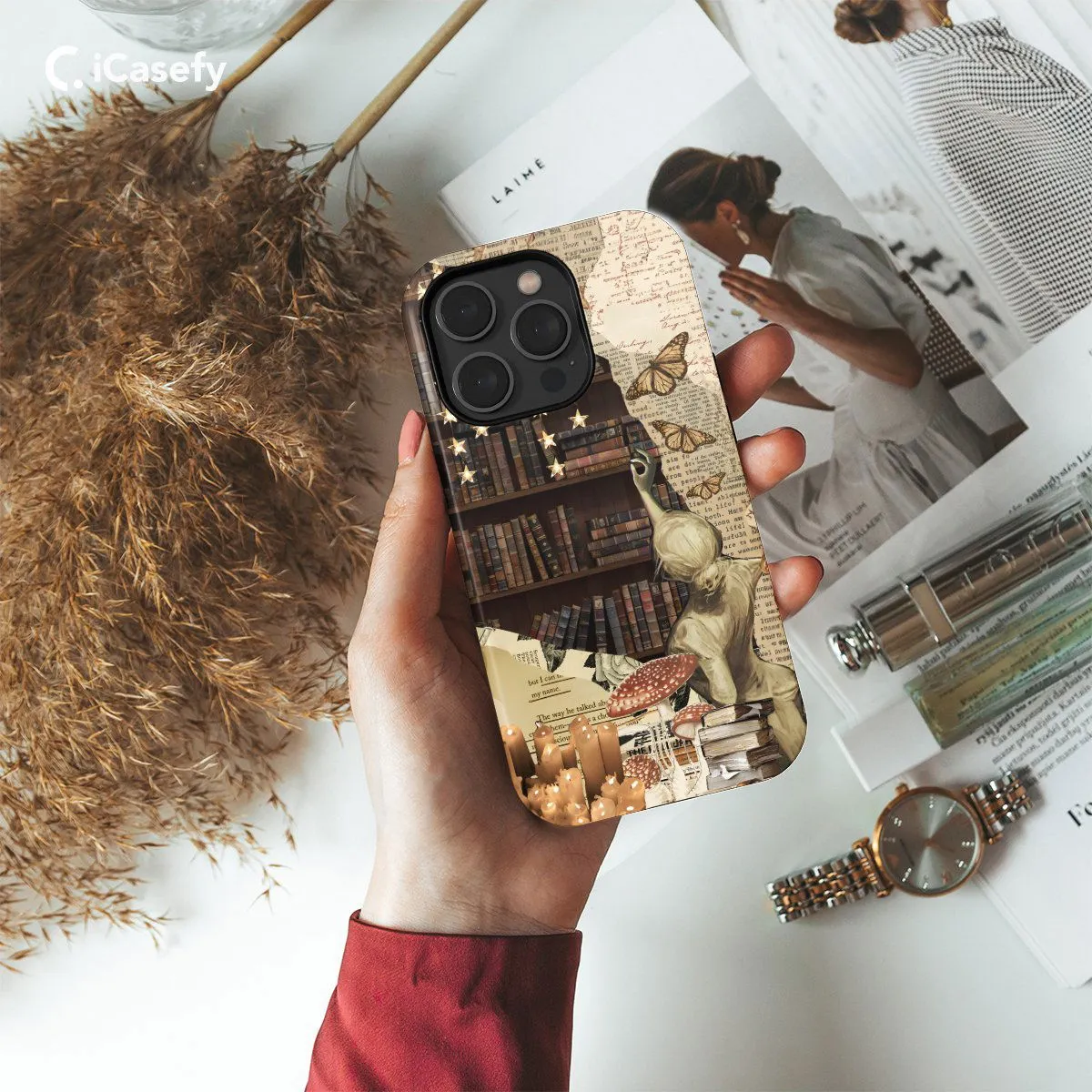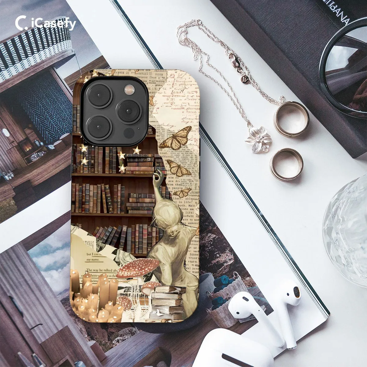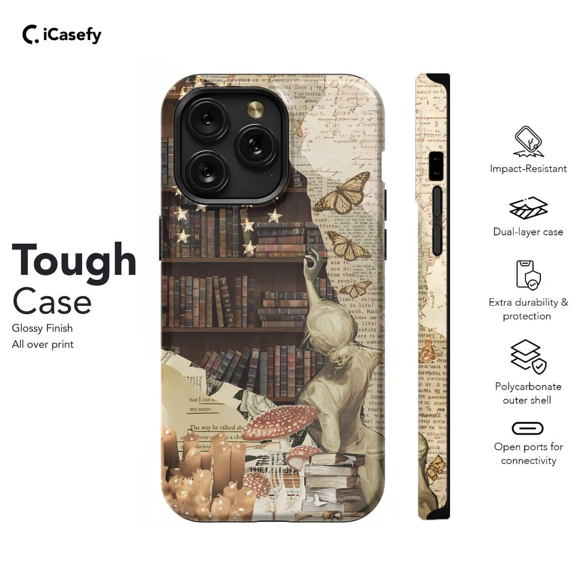 Celebrate the joy of reading and literature with a charming bookish collage phone case. Adorned with images of books, reading glasses, typewriters, and other literary motifs, this accessory captures the essence of book lover culture in a delightful and aesthetic way. Carry a touch of literary inspiration with you wherever you go, letting your device become a tribute to the beauty of storytelling and the magic of books with this delightful and bookish accessory.