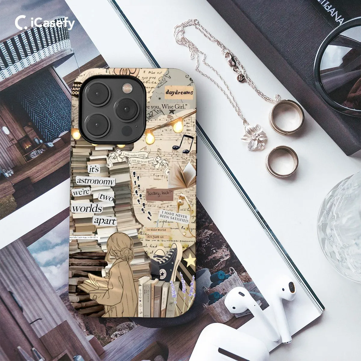 Celebrate the joy of reading and literature with a charming bookish collage phone case. Adorned with images of books, reading glasses, typewriters, and other literary motifs, this accessory captures the essence of book lover culture in a delightful and aesthetic way. Carry a touch of literary inspiration with you wherever you go, letting your device become a tribute to the beauty of storytelling and the magic of books with this delightful and bookish accessory.