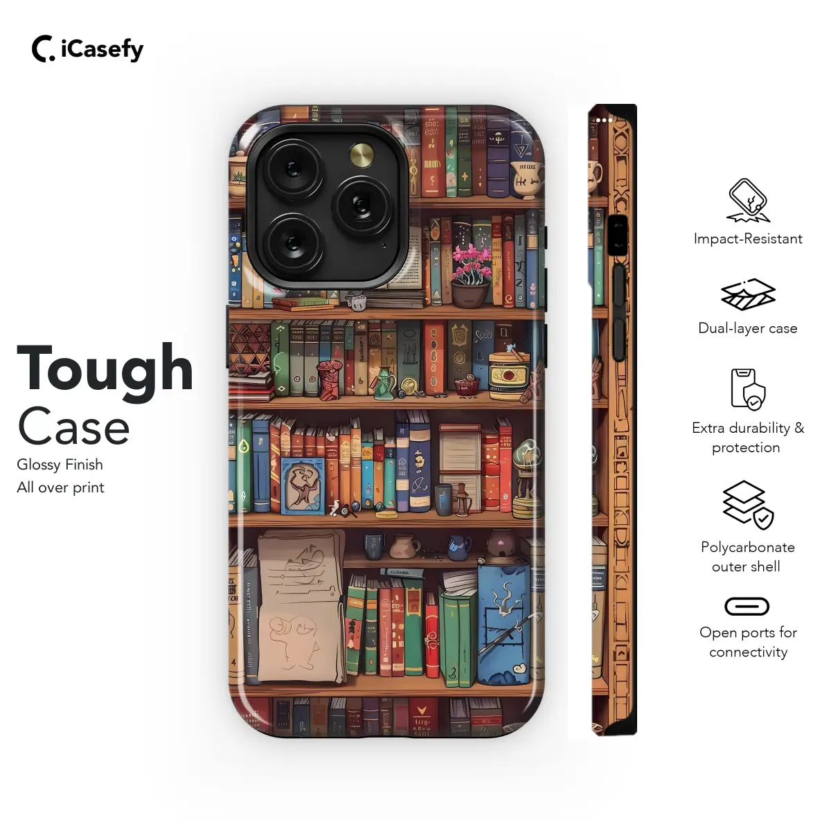 Carry your love for reading with you wherever you go with our Book Lover Bookshelf Phone Case. Its unique design features a captivating bookshelf filled with iconic literary classics, evoking a sense of cozy tranquility and inspiring creativity. Crafted to protect your iPhone, Samsung, or Pixel, this case is not only a stylish accessory but also a heartfelt tribute to the magic of books. Embrace the book lover in you and let this phone case be a constant reminder of the joy and adventure found within the pages of a beloved story.