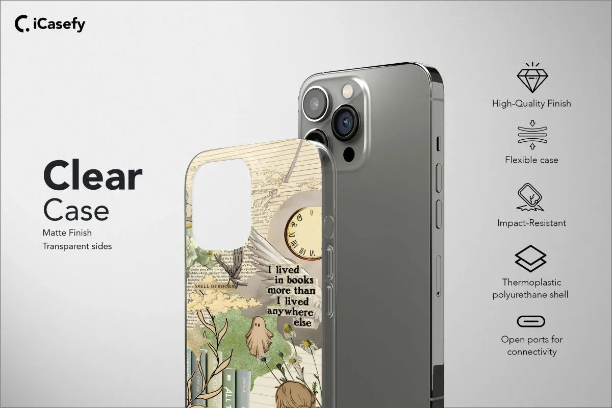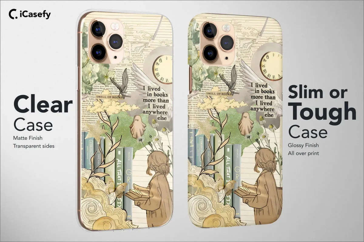 📚 Immerse yourself in the enchanting world of literature with our Book Lover Phone Case - a perfect blend of bookish charm and aesthetic allure. Designed to fit a range of devices, this case features a captivating collage of elements that will resonate with every book enthusiast. The design unfolds like a magical story, with delicate butterflies, whimsical moons, and stars illuminating the backdrop. A candle-wielding girl with wings adds a touch of fantasy, while floral, flower, and leaf motifs bring a natural elegance to the scene. Surrounding it all are quotes that celebrate the love for literature and the joy it brings. Unique details such as mushroom vinyl and a feathered friend add an extra layer of whimsy. Crafted with care, this case not only protects your device but also elevates its style, making it an ideal accessory for those who seek a perfect harmony of art and literature in their everyday lives. 🌙🦋📱