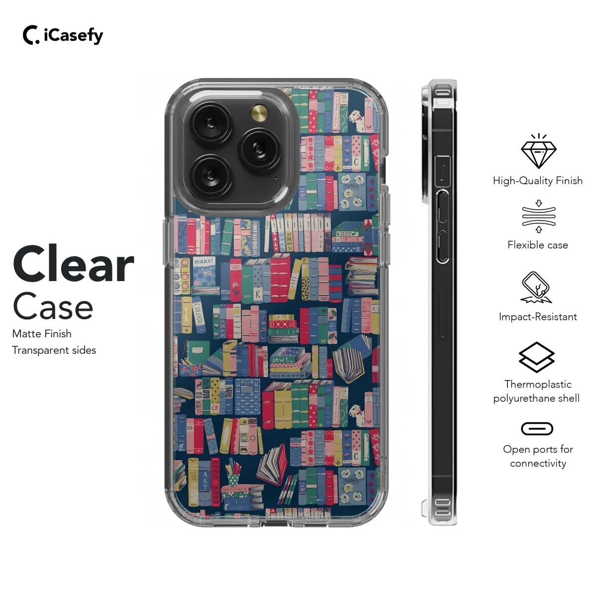 Protect your phone in style with our unique book shelf design case. The durable construction safeguards your device from scratches and bumps, while the eye-catching graphic adds a touch of personality. Available for iPhone, Samsung, and Pixel models.