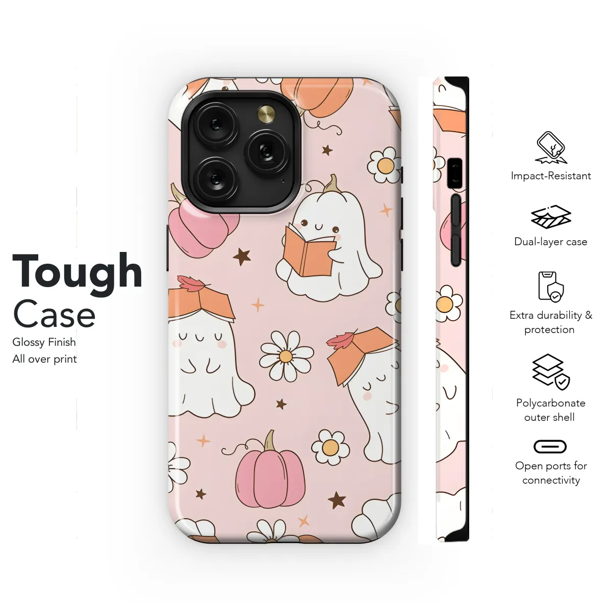 Books and boos! Take your love of reading and all things spooky everywhere you go with this glow-in-the-dark ghost phone case. Featuring an adorable ghost surrounded by your favorite literary quotes, this case is sure to get you into the Halloween spirit. Choose from a variety of phone models to find the perfect fit for your device.