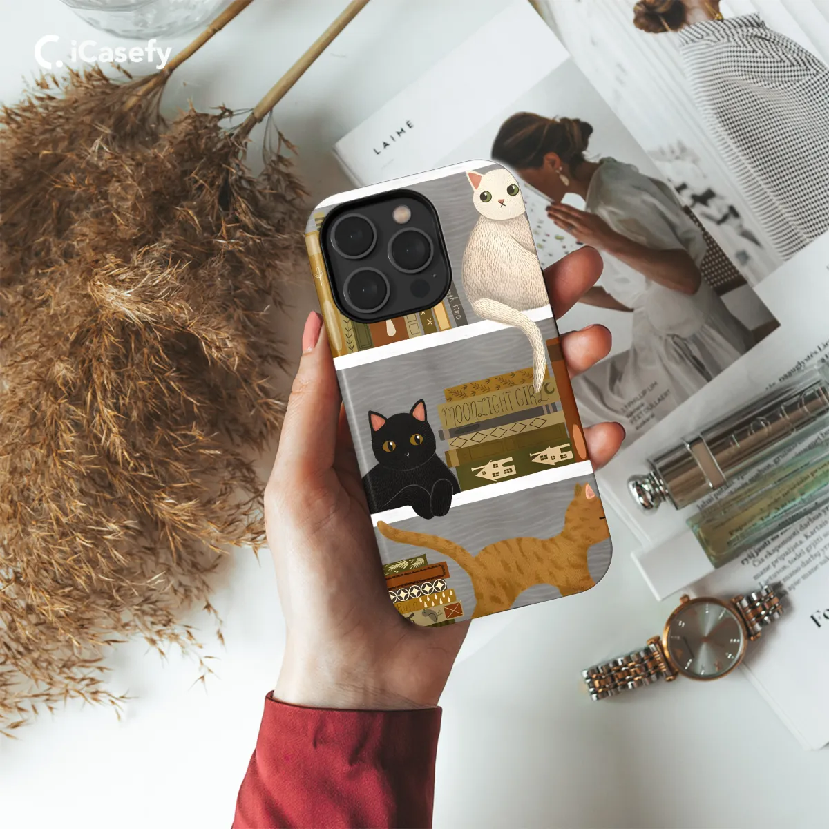 Oppo Reno8 Bookshelf Cat Phone Case - Image 1