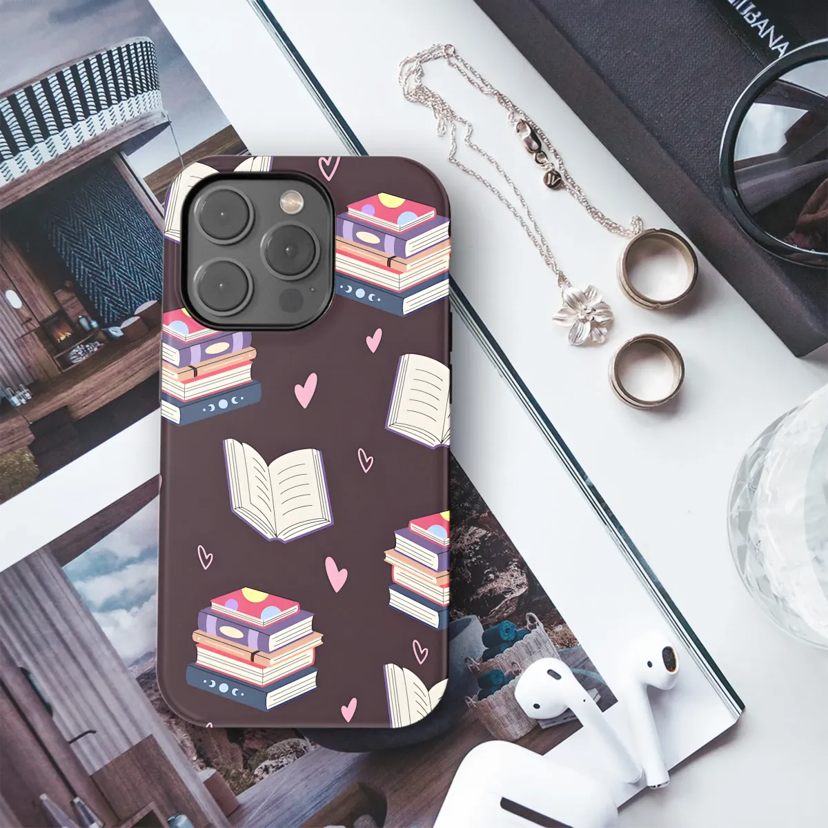 Embrace your inner bookworm with this charming design, featuring stacks of colorful books and open pages, scattered with whimsical hearts. This delightful pattern is perfect for adding a touch of literary elegance to your everyday life, showcasing a love for reading and knowledge. The soft color palette and cute illustrations create a cozy and inviting aesthetic, ideal for anyone who appreciates a good story. This unique design transforms a simple accessory into a personal statement, reflecting your passion for literature and charming style. The intricate details and playful hearts add a touch of whimsy and magic, making it a must-have for bibliophiles and design enthusiasts alike. Express your personality with this enchanting pattern, a celebration of books and the joy of reading, perfect for adding a unique and sophisticated touch to your personal style. Bring the beauty of literature into your world with this captivating design. This print is high-quality and vibrant, guaranteed to turn heads and spark conversation.