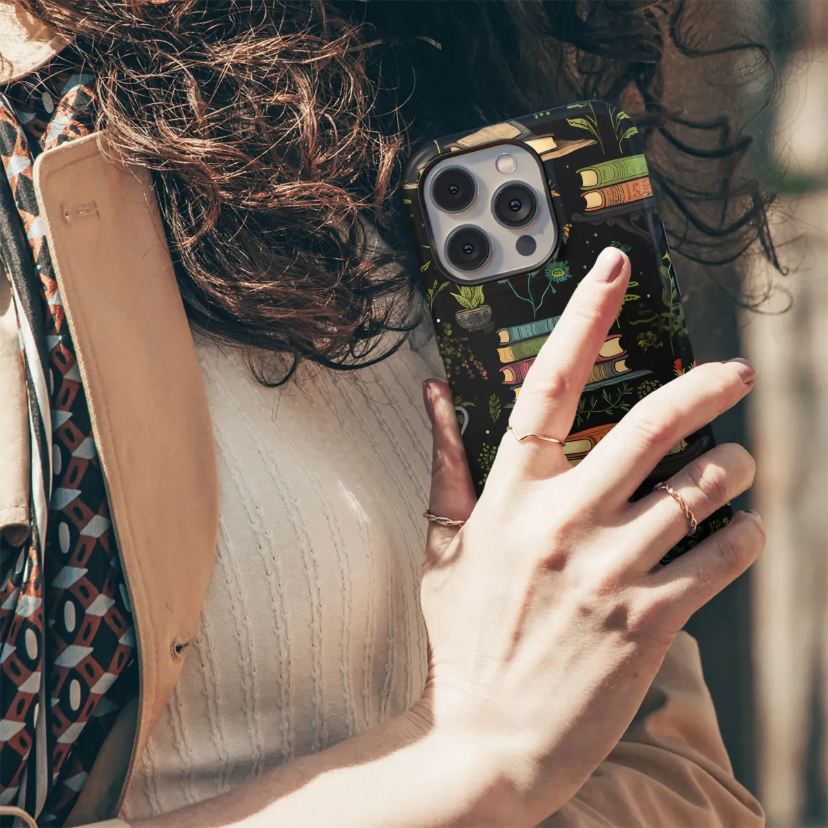Enchant your everyday tech with this captivating design, perfect for the book lover and plant enthusiast. This artwork features stacks of vintage books nestled amongst lush botanical illustrations, all against a dramatic black backdrop. Imagine carrying a miniature secret garden and personal library wherever you go! The detailed artwork showcases various flora and elegant bookshelves, creating a unique and stylish accessory. Ideal for anyone who appreciates literary aesthetics, library chic, or simply wants to add a touch of whimsical sophistication to their everyday essentials. Elevate your gadget with this artistic expression that speaks volumes about your love for reading and nature. Get yours today and let your inner bookworm bloom! This design is perfect for accessories, covers, and more.
