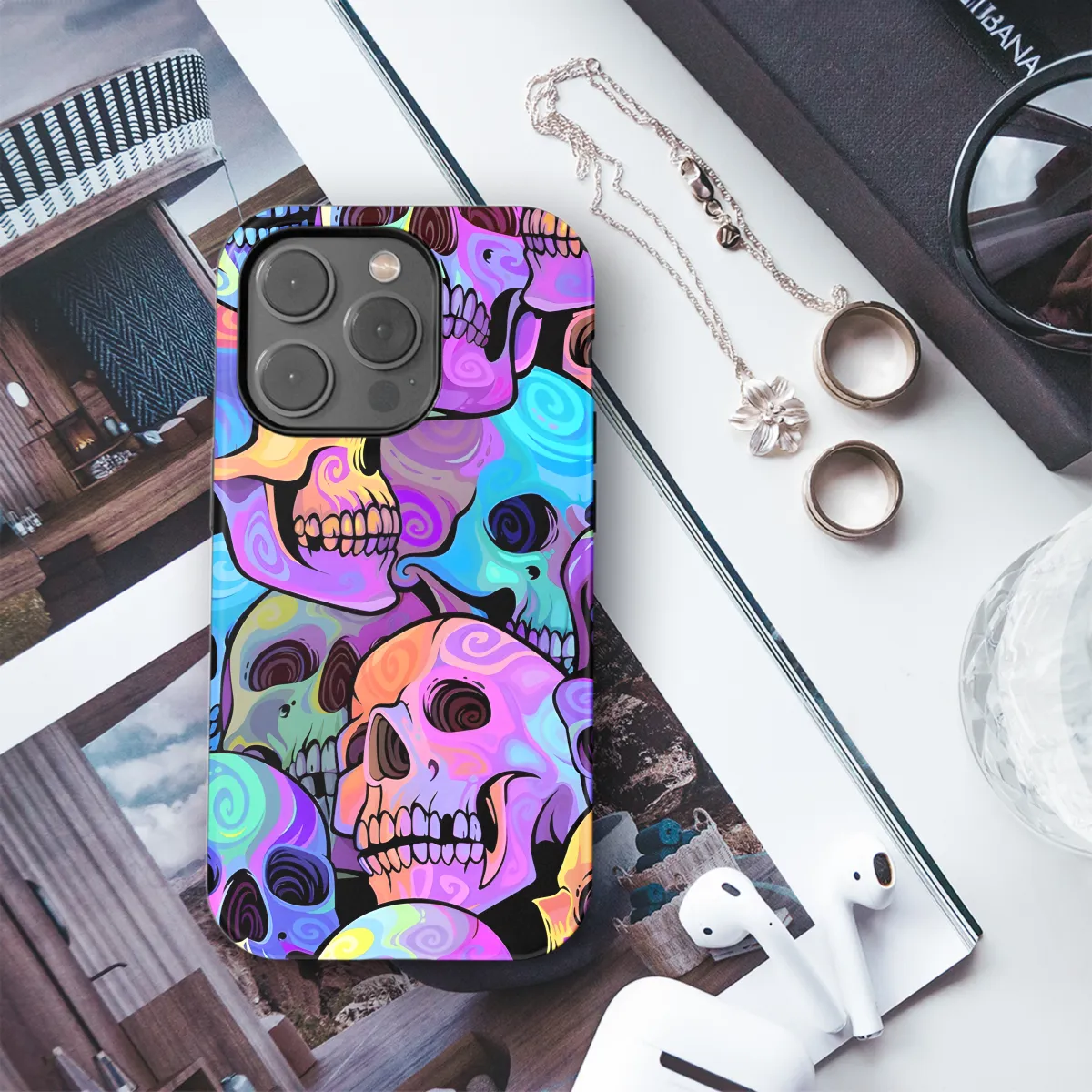 Protect your phone with a touch of vibrant individuality! Showcasing an eye-catching seamless pattern of painted skulls in a rainbow of colors, this phone case delivers both style and security.