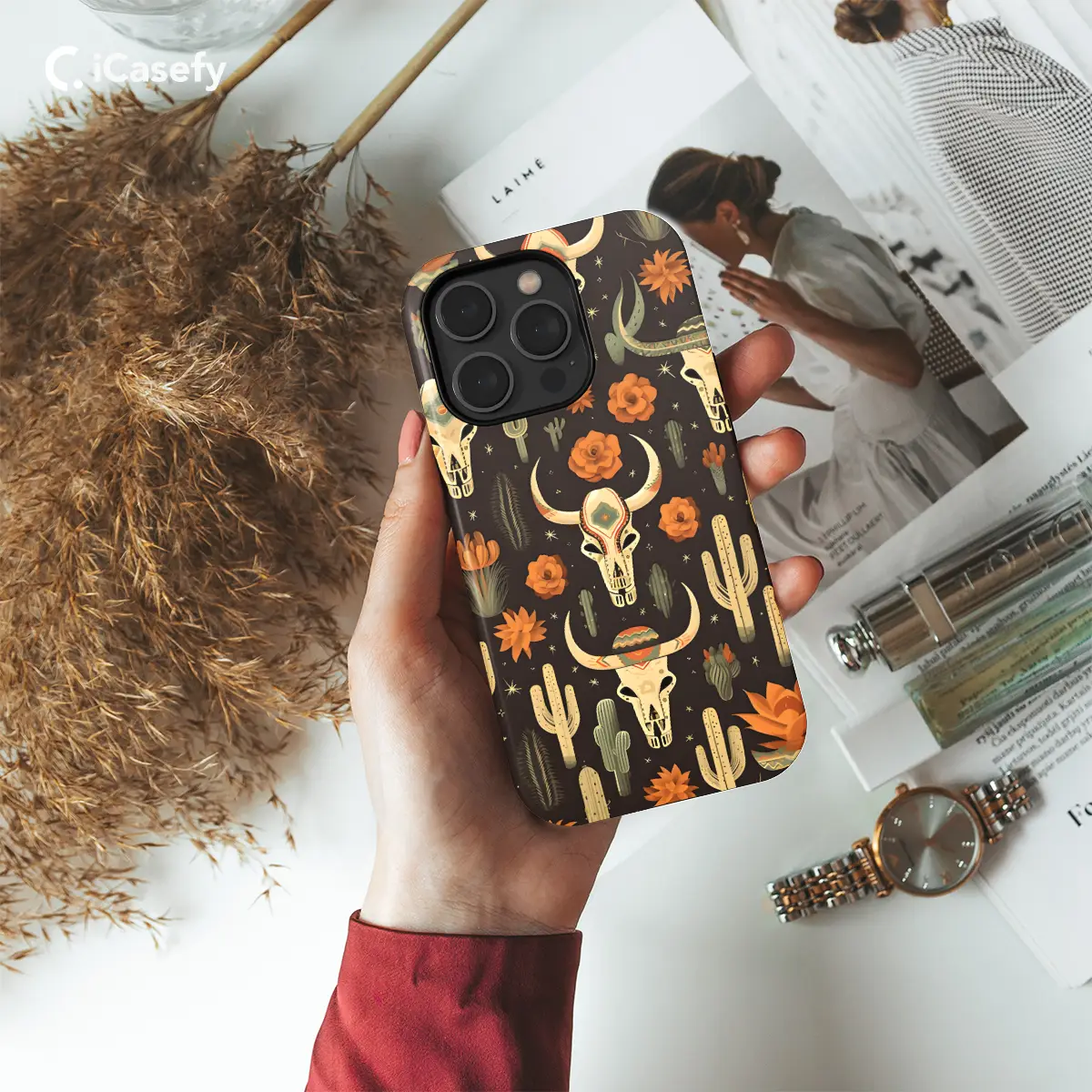 Giddy up, partner! Embark on an epic Western adventure with our Buffalo Skull and Cactus Phone Case, handcrafted with rugged charm. This iconic duo, a testament to the untamed spirit of the Wild West, will adorn your device with a touch of rugged sophistication. The vibrant cactus stands tall amidst the intricate buffalo skull design, evoking images of sun-kissed prairies and starlit nights. Experience the allure of the frontier with every glance at your phone, wrapped in this exclusive case that whispers tales of freedom and boundless horizons.
