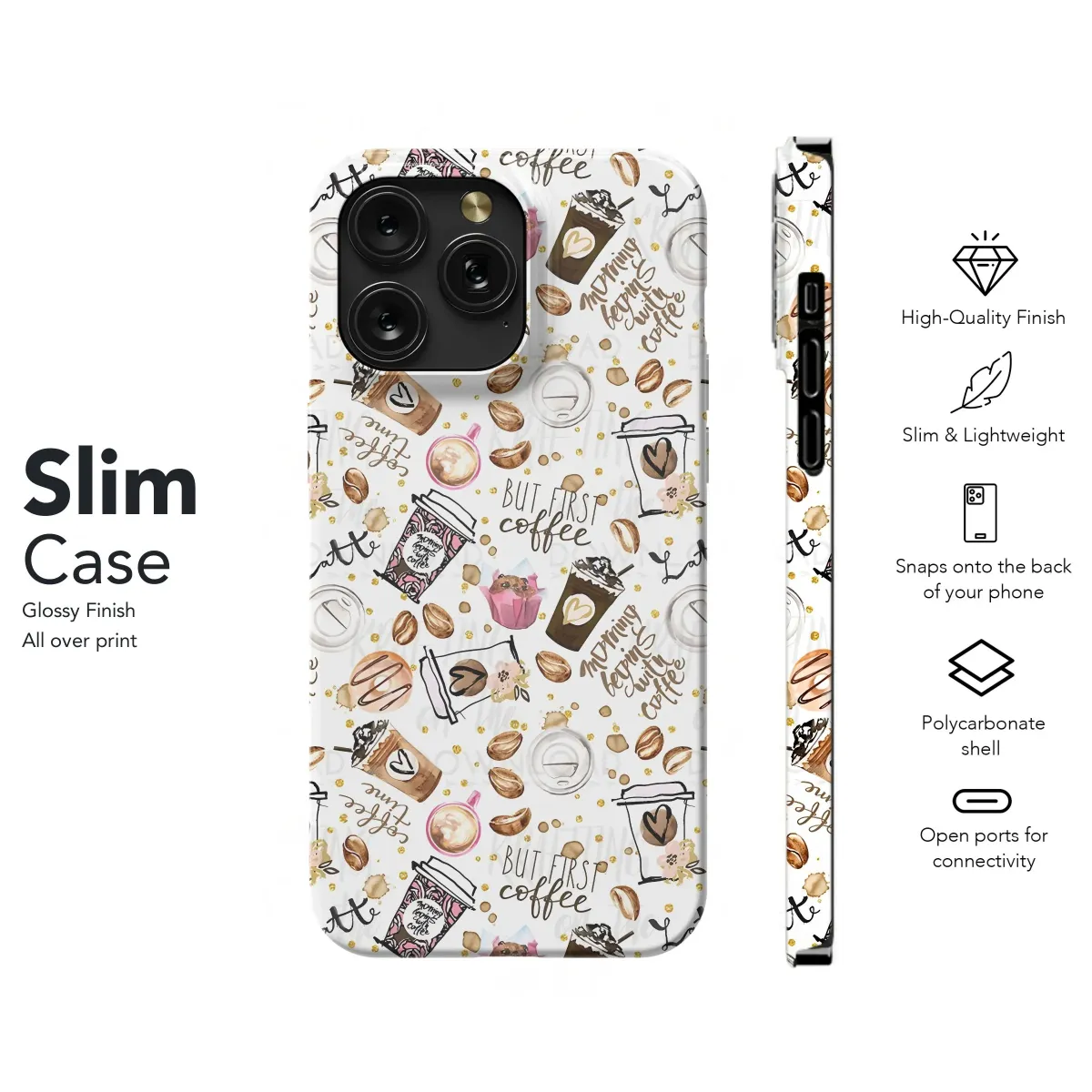 But first, coffee? Show your love for lattes with this stylish phone case! Available for iPhone, Samsung, and Pixel models.