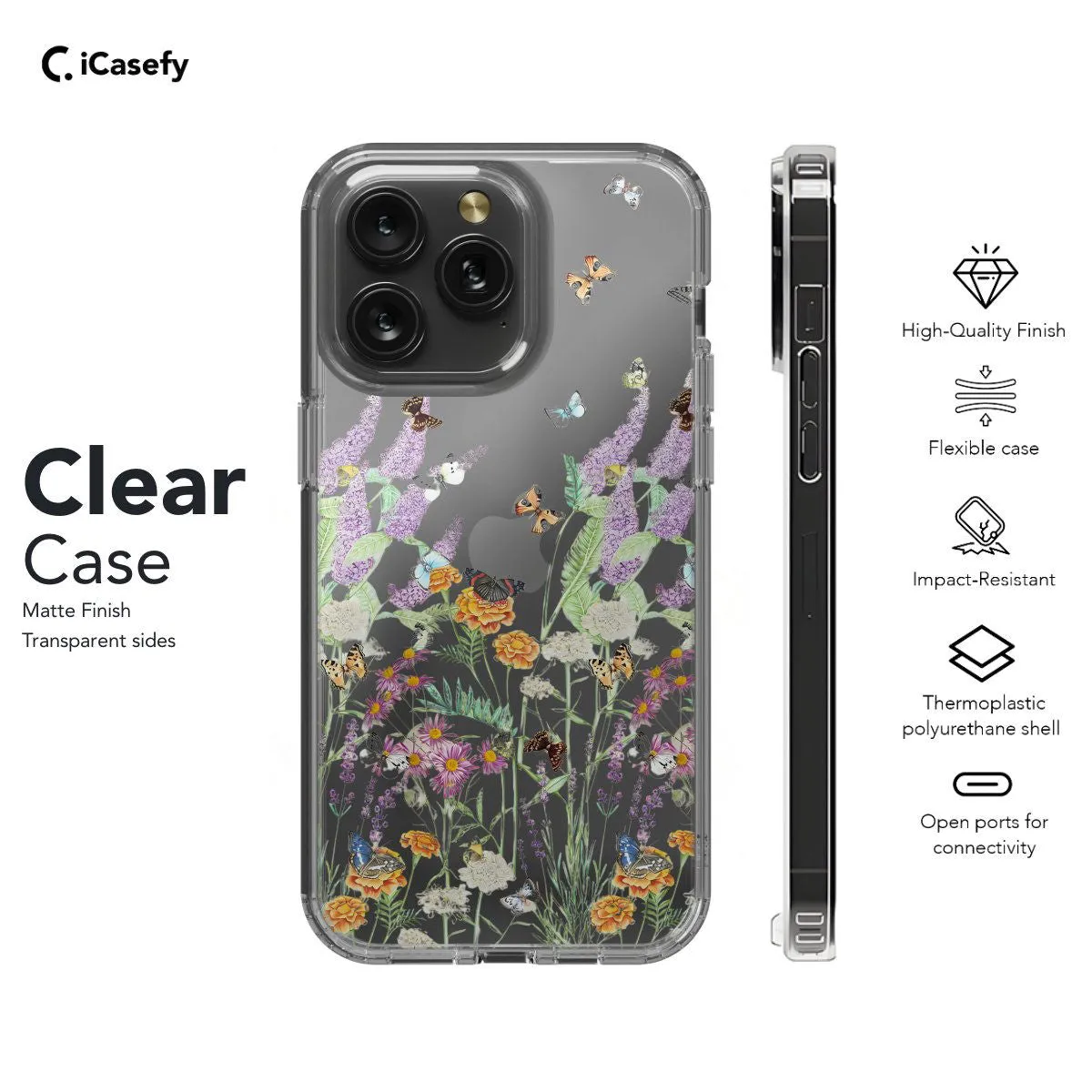 Embrace the vibrant beauty of spring with this enchanting phone case featuring a butterfly floral design. Adorned with delicate blossoms and fluttering butterflies, this accessory captures the essence of renewal and joy that comes with the season. Carry a touch of nature's splendor with you wherever you go, letting your device become a canvas for the whimsical and uplifting spirit of spring with this delightful accessory.