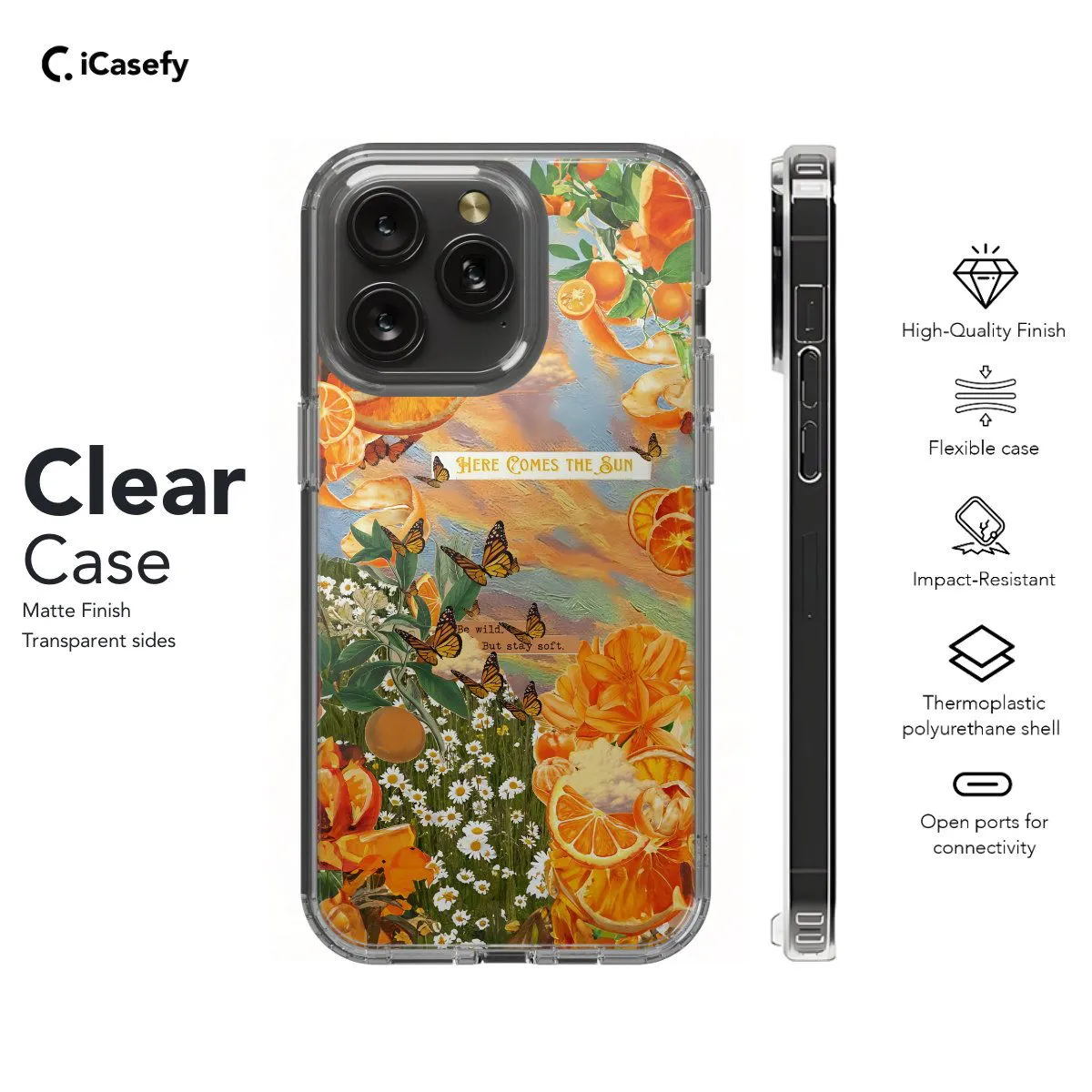 Embrace the whimsical beauty of nature with our Nature's Butterfly Oranges Collage phone case. This enchanting design features a collage of vibrant oranges, delicate butterflies, and lush foliage, evoking the charm of a sun-kissed garden. Crafted for both style and protection, it offers precise cutouts for easy access to ports and buttons. Let this accessory be a celebration of the harmonious blend of citrus and butterflies found in nature's embrace.