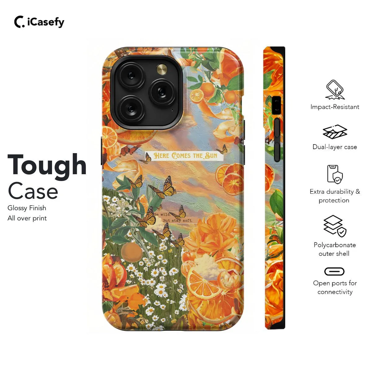 Embrace the whimsical beauty of nature with our Nature's Butterfly Oranges Collage phone case. This enchanting design features a collage of vibrant oranges, delicate butterflies, and lush foliage, evoking the charm of a sun-kissed garden. Crafted for both style and protection, it offers precise cutouts for easy access to ports and buttons. Let this accessory be a celebration of the harmonious blend of citrus and butterflies found in nature's embrace.