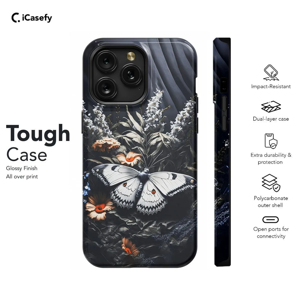 Embrace the enchanting beauty of nature with our Butterfly Moth Art Phone Case. Inspired by the delicate wings of butterflies and moths, this case features a mesmerizing artistic rendition that exudes ethereal elegance. Crafted for both style and protection, it safeguards your phone while adding a touch of natural charm. With precise cutouts for ports and buttons, it ensures seamless functionality. Illuminate your phone with the graceful allure of butterfly moth artistry with our phone case today!