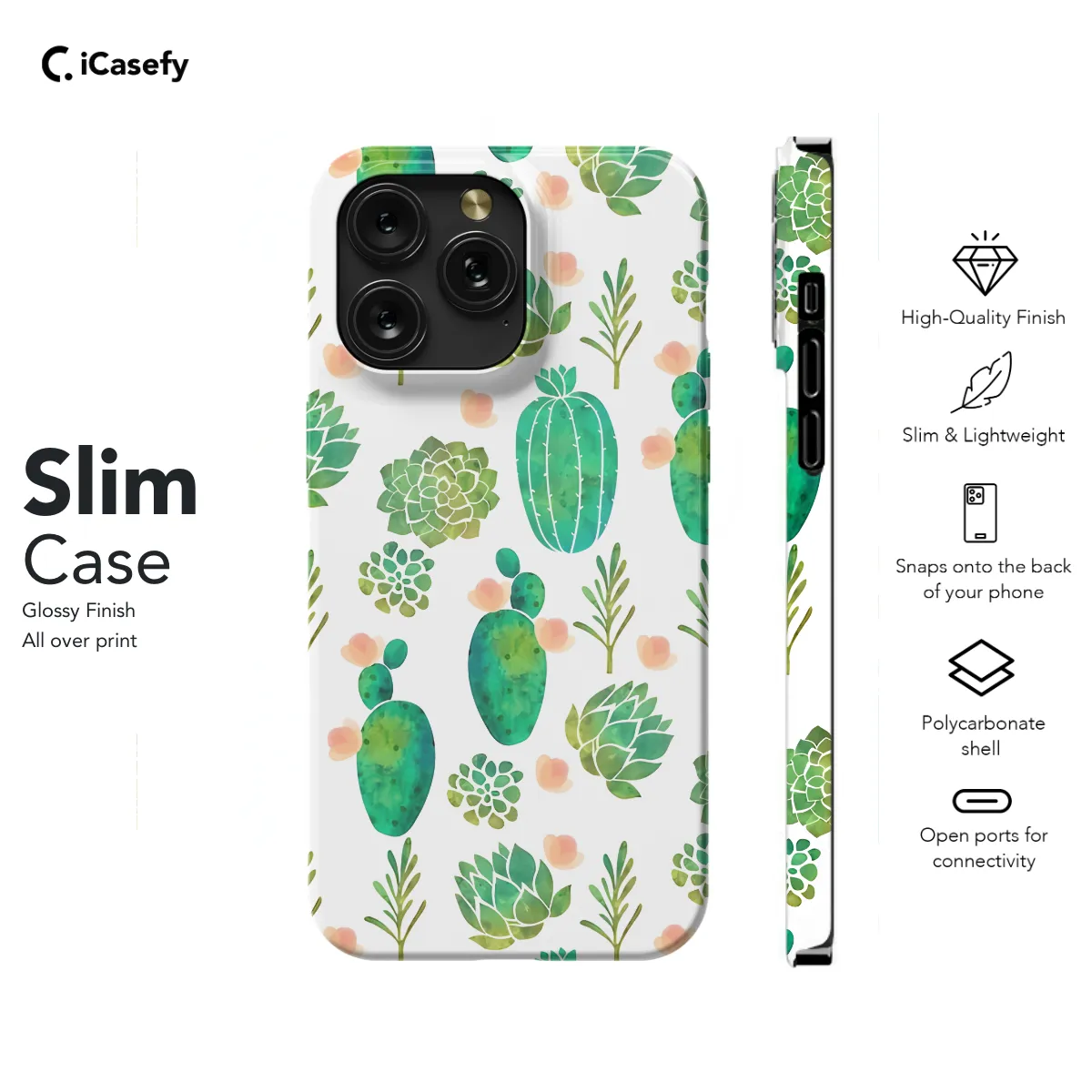 **Protect your phone in style with this vibrant Cactus pattern Phone Case!** Adorned with a unique and eye-catching cactus print, this case is sure to turn heads while keeping your device safe from scratches, bumps, and drops. Crafted from durable materials, it snugly fits your iPhone, Samsung, or Pixel phone, providing reliable protection without adding bulk. The precise cutouts ensure easy access to all ports and buttons, so you can use your phone without any hassle. Whether you're a nature enthusiast or simply love a touch of whimsy, this Cactus pattern Phone Case is the perfect way to personalize and protect your beloved device.