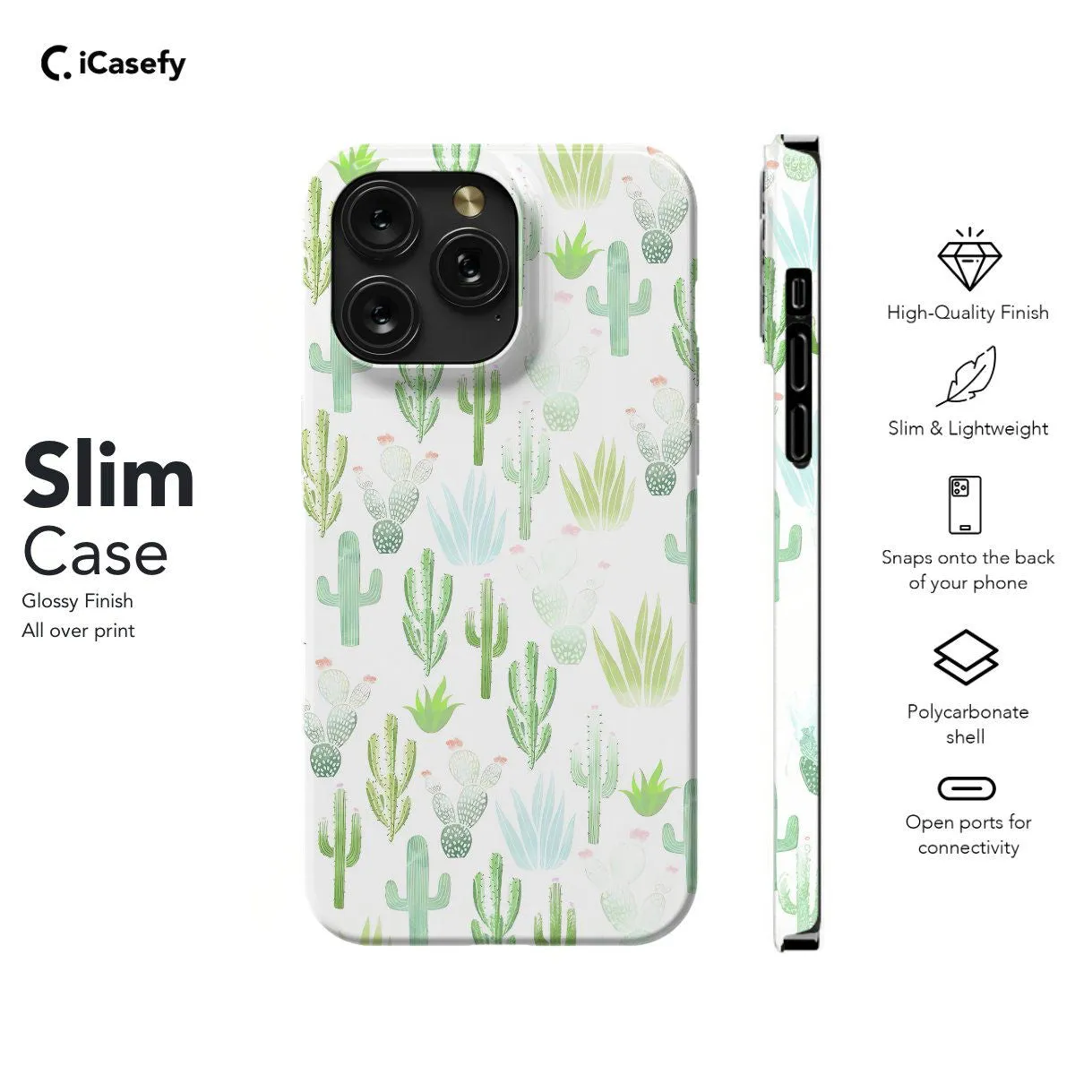 Embrace the desert charm with our Cactus Pattern phone case. This captivating design features a stylish arrangement of cacti in varying shapes and sizes, evoking the beauty of arid landscapes. Crafted for both style and protection, it offers precise cutouts for easy access to ports and buttons. Let this accessory transport you to the serene beauty of the desert wherever you go.