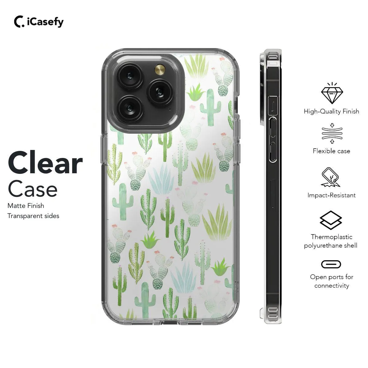 Embrace the desert charm with our Cactus Pattern phone case. This captivating design features a stylish arrangement of cacti in varying shapes and sizes, evoking the beauty of arid landscapes. Crafted for both style and protection, it offers precise cutouts for easy access to ports and buttons. Let this accessory transport you to the serene beauty of the desert wherever you go.