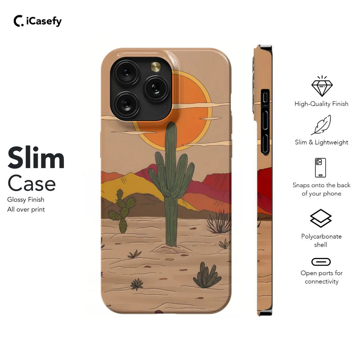 Immerse yourself in the rustic beauty of the desert landscape with this captivating phone case featuring a western-inspired desert scene complete with cacti and rugged mountains. Inspired by the rugged charm of the countryside, this case evokes the essence of country living and cowboy culture. Carry a touch of the frontier with you wherever you go and let your device reflect your love for the open range and western traditions with this charming accessory.