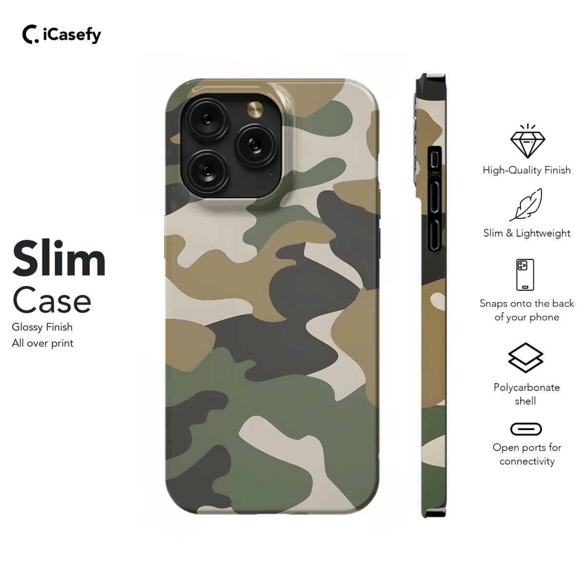 Protect your phone in style with our exclusive Camouflage Phone Case. Designed for iPhone, Samsung, and Pixel devices, this case offers a sleek and rugged look with its military-grade camouflage print. Its durable construction withstands drops and impacts, while raised edges safeguard your screen from scratches. The case's precise cutouts ensure easy access to buttons, ports, and speakers. Choose from various camouflage patterns to match your unique style and stay protected on the go.