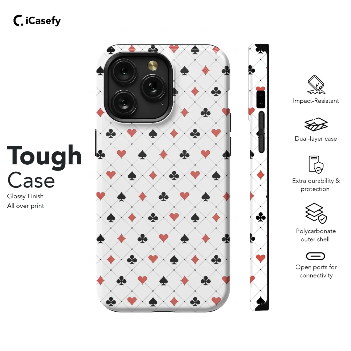 Protect your phone in style with our Card Suit phone case! Perfect for game lovers and those who want to add a touch of sophistication to their device, this case features classic card suit designs in a variety of colors. Made from durable materials, it provides excellent protection from scratches, bumps, and falls. Choose from a wide range of card suits and phone models to find the perfect match for your needs.