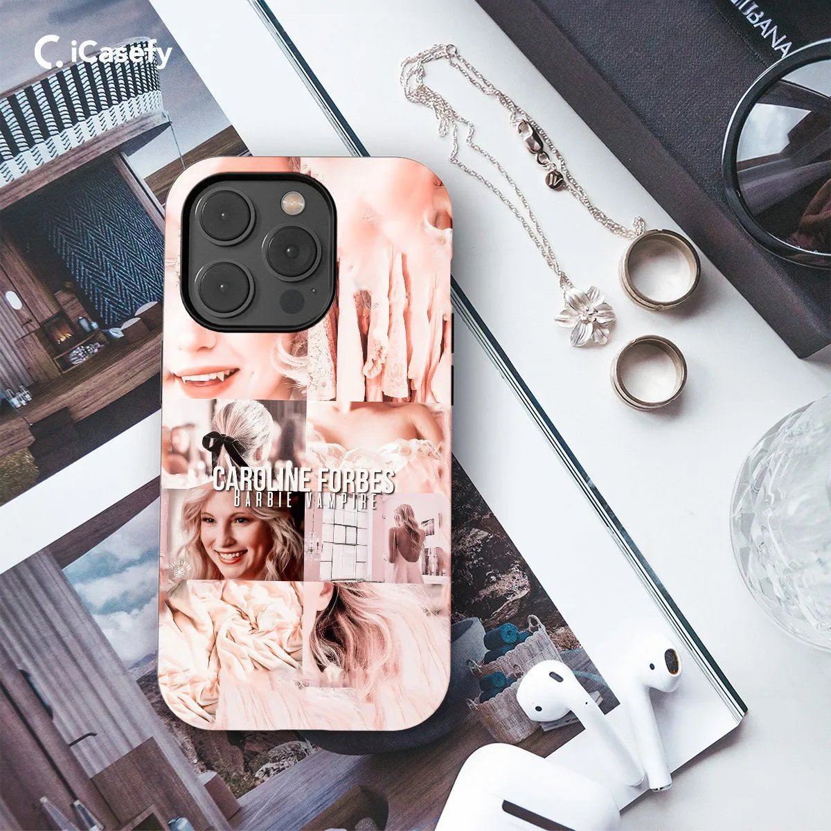 Celebrate the dynamic character of Caroline Forbes from The Vampire Diaries with this captivating phone case featuring a collage of iconic moments from the series. From her transformation into a vampire to her growth as a leader, this accessory pays homage to Caroline's journey and resilience. Carry a piece of Mystic Falls with you wherever you go and let your device become a tribute to the strength and complexity of this beloved character with this stylish and meaningful case.