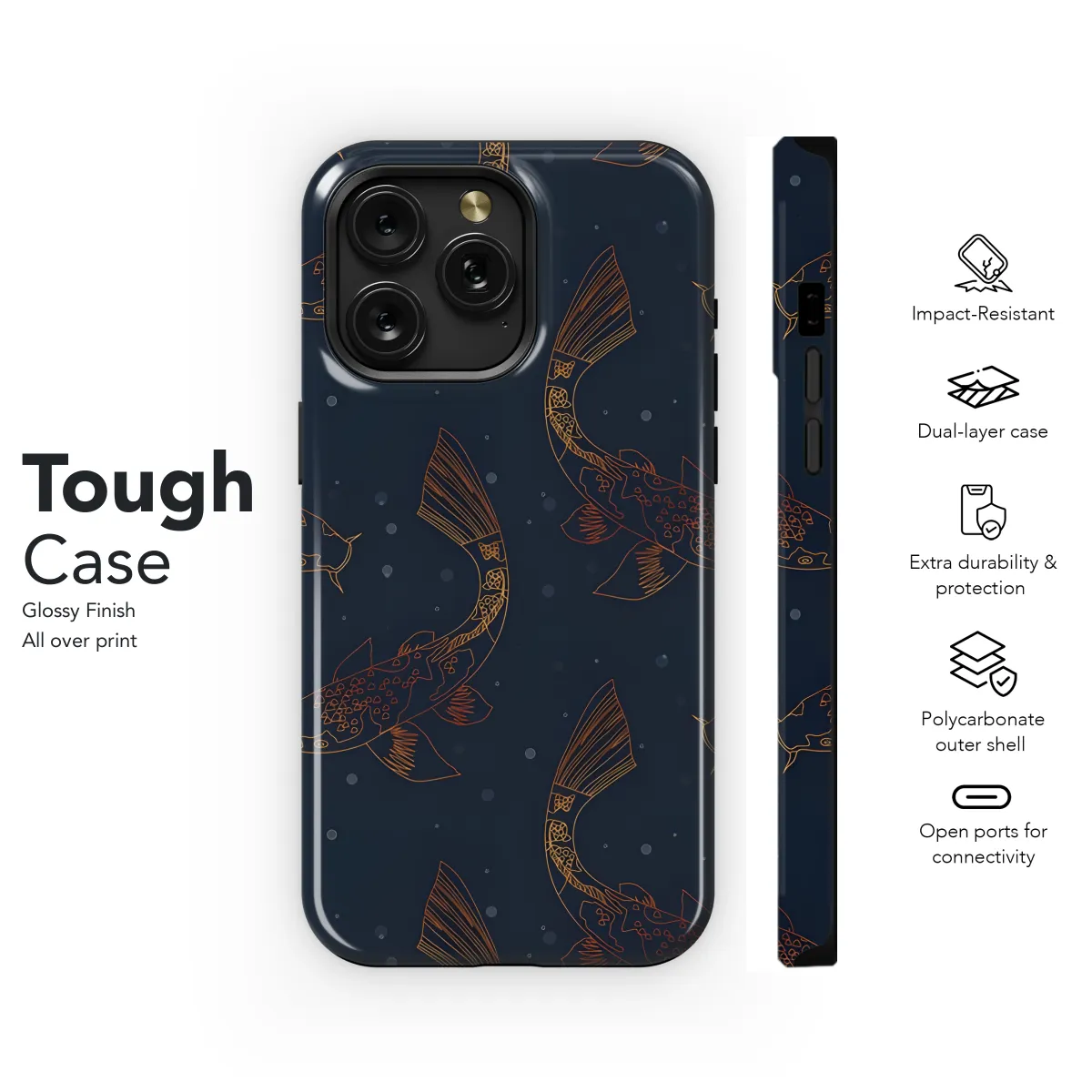 **Protect Your Device in Style with Our Carp-Themed Phone Case** Our exquisite Carp Phone Case offers your iPhone, Samsung, or Pixel an exceptional level of protection. Emblazoned with an elegant carp design, this case not only safeguards your device but also enhances its aesthetic appeal. The durable material shields against scratches and impacts, while the precise cutouts ensure easy access to all buttons, ports, and features. Elevate your phone's protection and style with our Carp Phone Case today!
