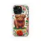 Cute Highland Coo Scottish Cow Floral Design Phone Case. Perfect for adding a touch of country charm to your device. The design features a cartoon Highland cow with a cute pink flower headdress, surrounded by colourful flowers.