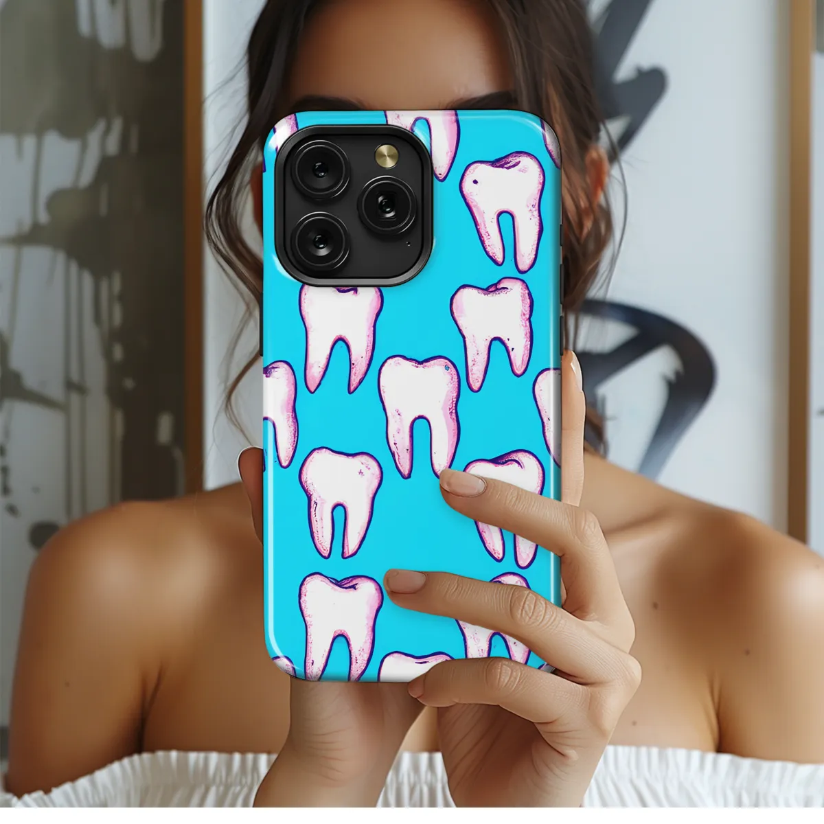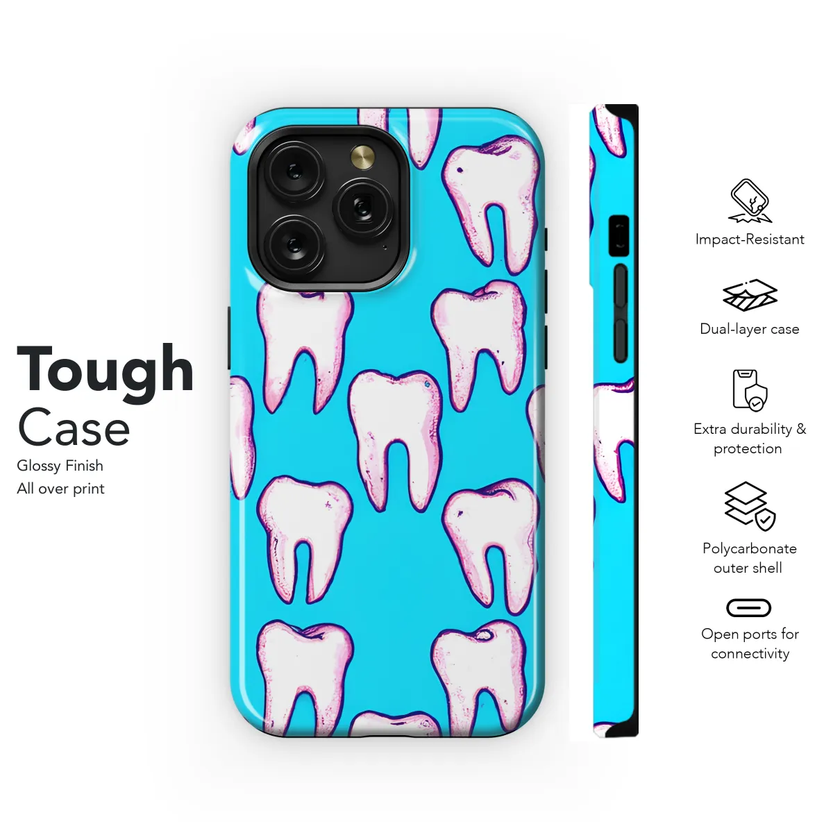 Protect your phone with a touch of whimsy with our Cartoon Tooth Phone Case. This adorable case features a playful tooth design that's sure to put a smile on your face. Made from durable materials, it offers reliable protection from scratches and bumps, ensuring your phone stays safe while you make a statement.