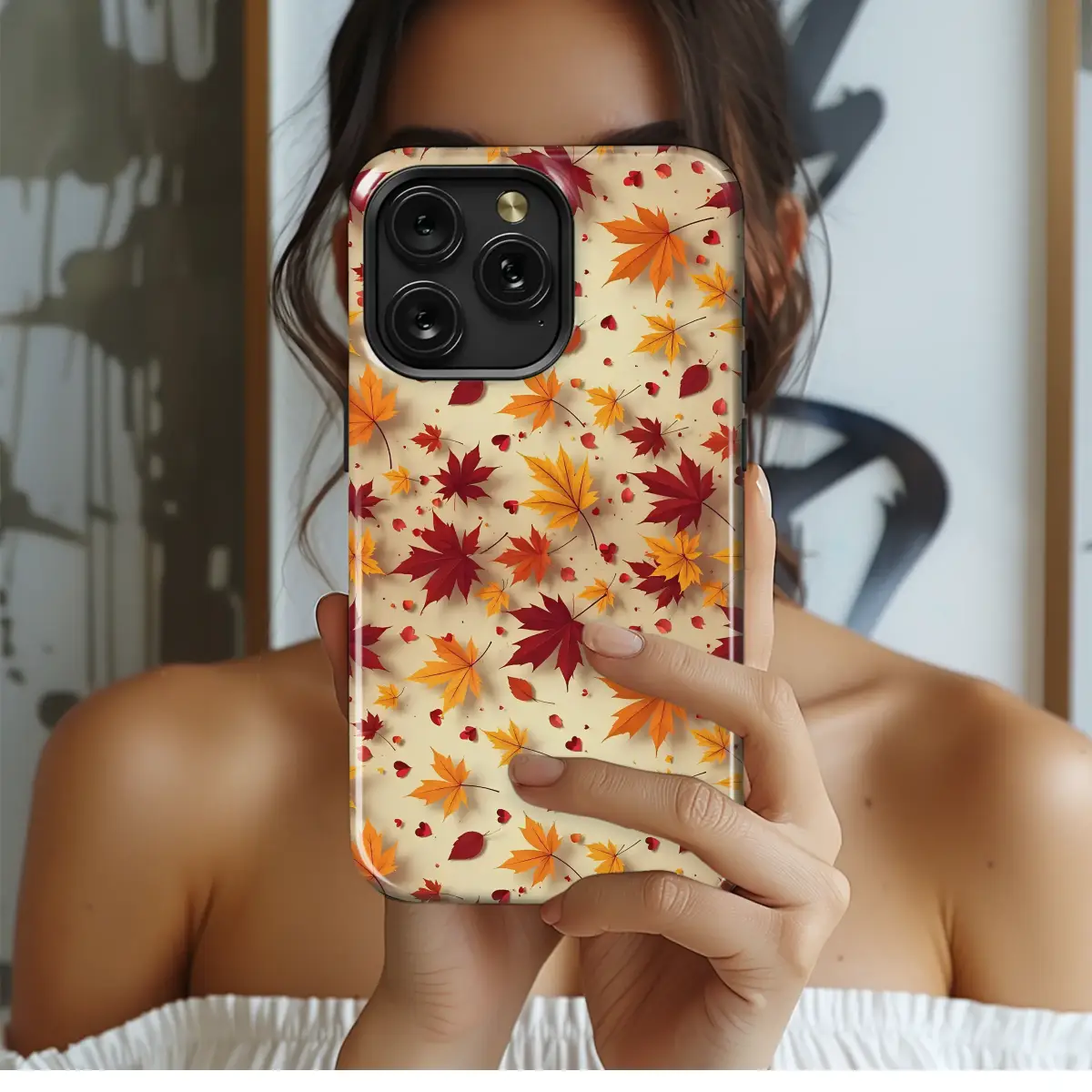 Embrace the heart of autumn and carry the magic of a golden-hour stroll wherever you go with this enchanting design. A whimsical whirlwind of falling maple leaves dances across a warm, creamy background, each one painted in the season's richest hues—from deep crimson and fiery orange to sun-kissed gold. Look closer, and you'll find tiny, romantic hearts scattered amongst the foliage, like secret love notes whispered on the crisp air. This botanical pattern is the perfect piece of pocket-sized poetry, your daily reminder of cozy sweater weather, spiced lattes, and the romantic beauty of nature's embrace. Adorn your most essential companion with this durable artwork, giving your daily tech a touch of cottagecore charm and a protective, stylish sheath. It's the ultimate aesthetic accessory for any nature lover, a thoughtful gift for her, and the perfect way to wrap your device in the warm, whimsical spirit of the fall season. Let this lovely autumn armor be your constant connection to the coziest time of year.