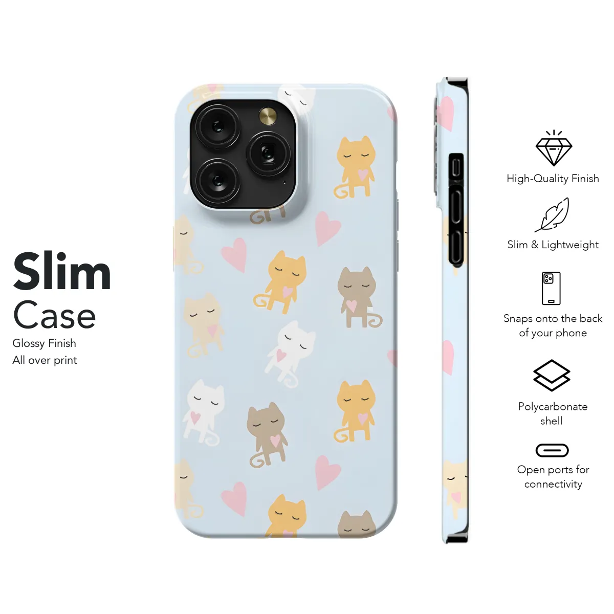 Protect your phone in style with our sleek and durable Cat Phone Case. Compatible with iPhone, Samsung, and Pixel, this case features our adorable and playful cat design, sure to turn heads wherever you go. Its sturdy construction safeguards your device from everyday bumps and scratches, while its slim profile ensures a comfortable grip and easy access to ports and buttons.
