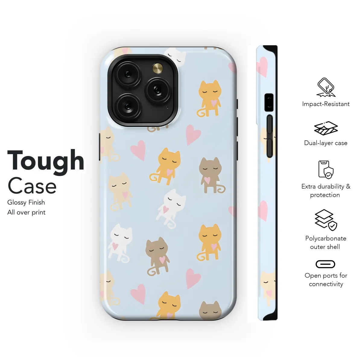 Protect your phone in style with our sleek and durable Cat Phone Case. Compatible with iPhone, Samsung, and Pixel, this case features our adorable and playful cat design, sure to turn heads wherever you go. Its sturdy construction safeguards your device from everyday bumps and scratches, while its slim profile ensures a comfortable grip and easy access to ports and buttons.