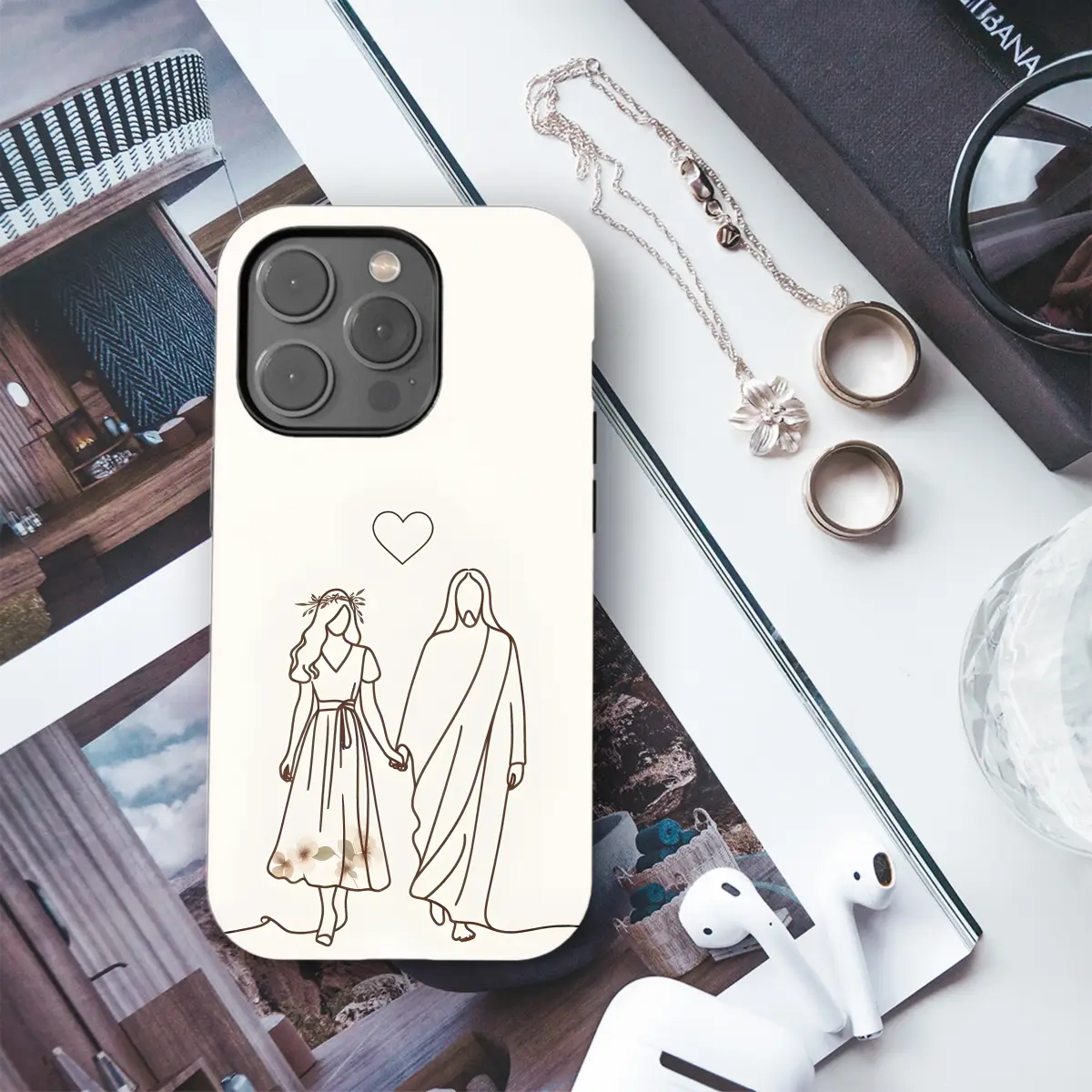 Celebrate your Christian faith with this stylish and minimalist phone case adorned with a delicate line art depiction of Jesus. Inspired by Catholic tradition, this case is perfect for expressing your devotion while keeping your phone protected. Available for iPhone, Samsung, and Pixel devices, it combines functionality with spiritual expression.
