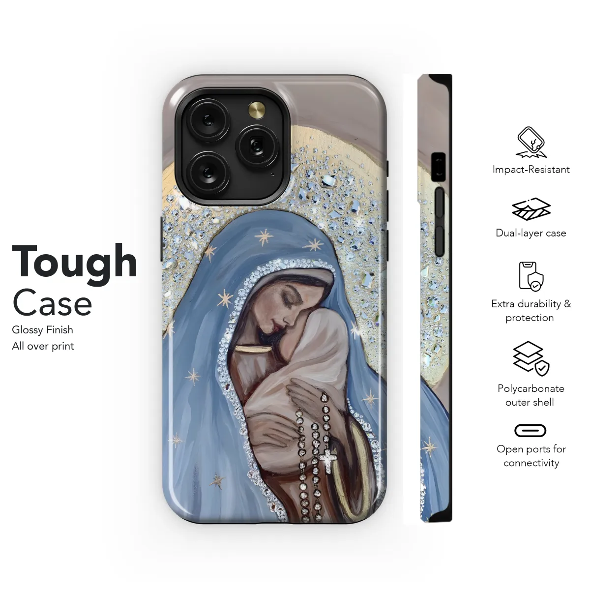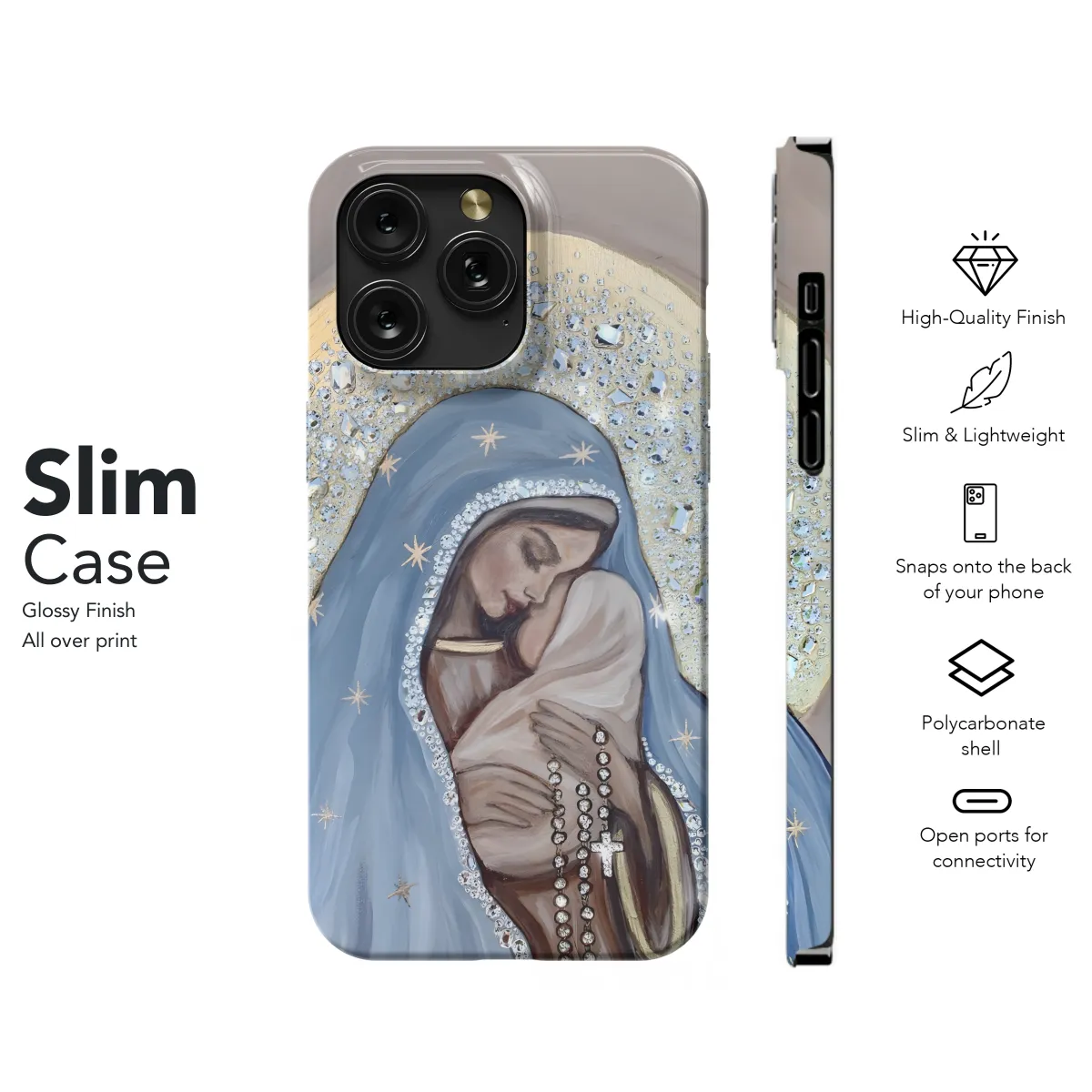Showcase your faith with our exclusive Catholic Christian Phone Case! Designed to protect your device while honoring your beliefs, this case features vibrant colors and intricate religious artwork that will inspire you throughout your day. Whether you're attending mass, praying at home, or simply showing off your devotion, this phone case is the perfect way to keep your tech safe and stylish. Fits iPhone, Samsung, and Pixel devices; model availability may vary.