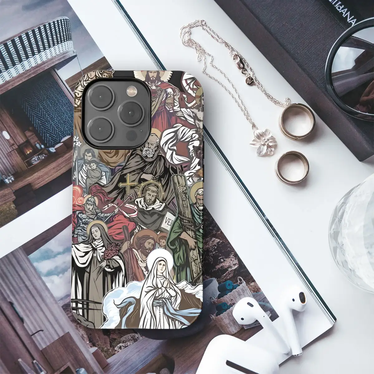 Carry your faith with you! This unique phone case features a collective art design of beloved Catholic Saints. Available for iPhone, Samsung, and Pixel models.